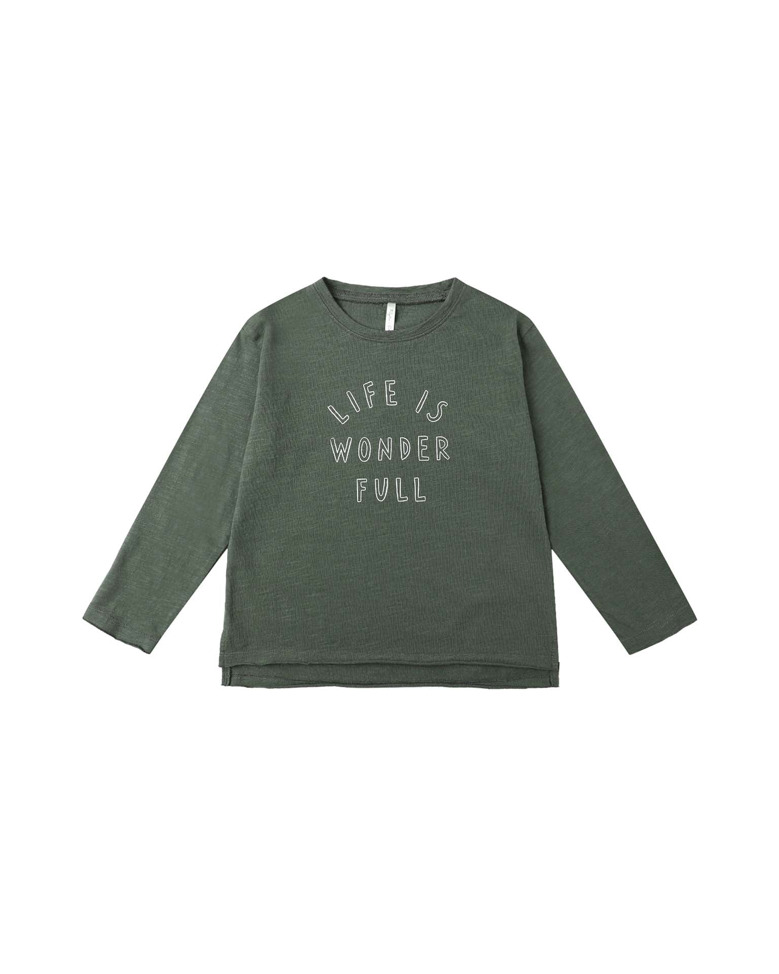 raw edge long sleeve tee in life is wonder full