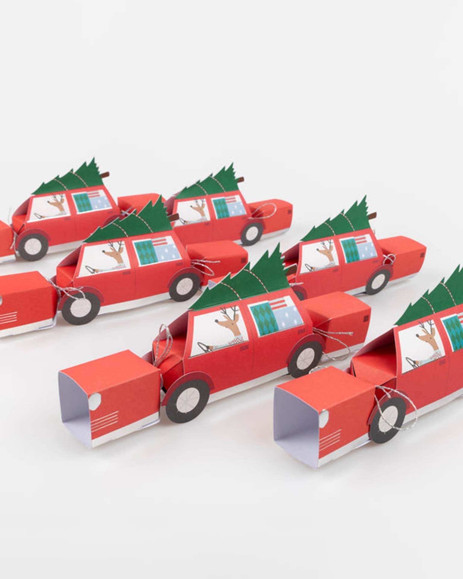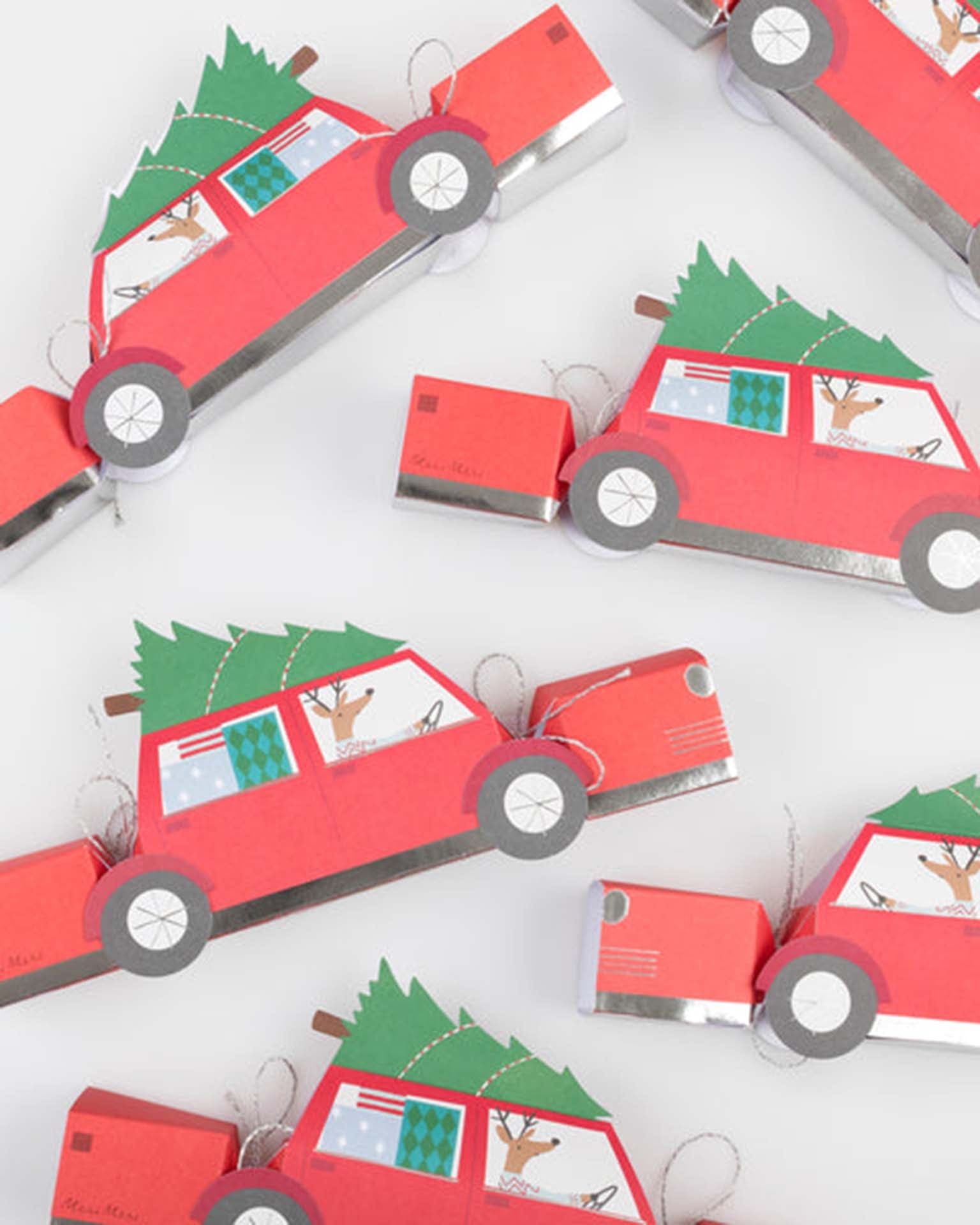 - 6 Car-shaped crackers made from colored paper