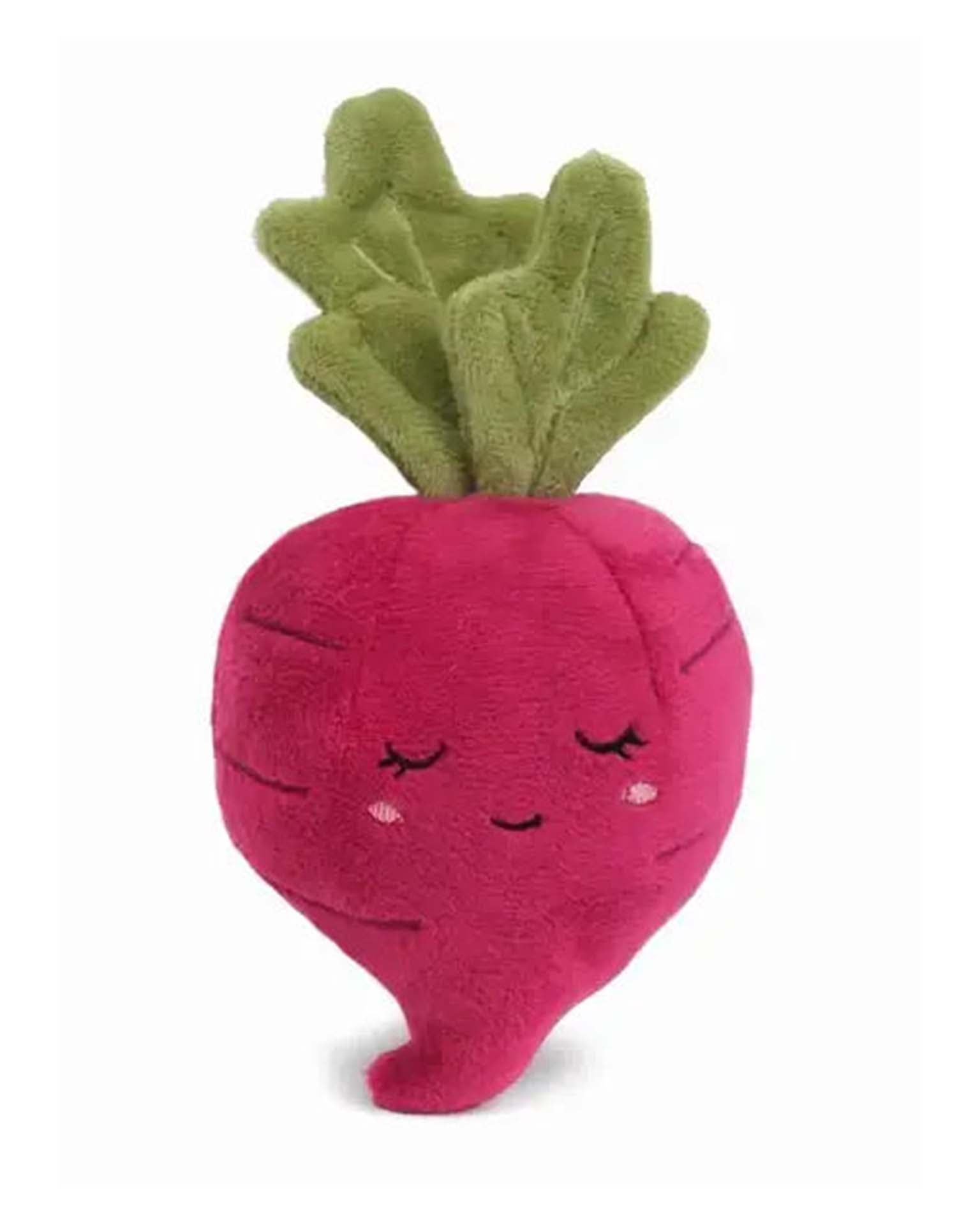 Play with your vegetables! Rhea Radish Plush Toy is well, pretty rad. Designed in an eye-catching magenta with luscious green leaves and a pretty embroidered face, this radish stuffed animal brings a unique energy to playtime. Super soft and snuggly, Mon Ami's radish plush toy makes an excellent cuddle buddy on car trips and the perfect pillow during naptime. No more rooting around for a one-of-a-kind gift: our radish stuffed animal will surprise and delight.