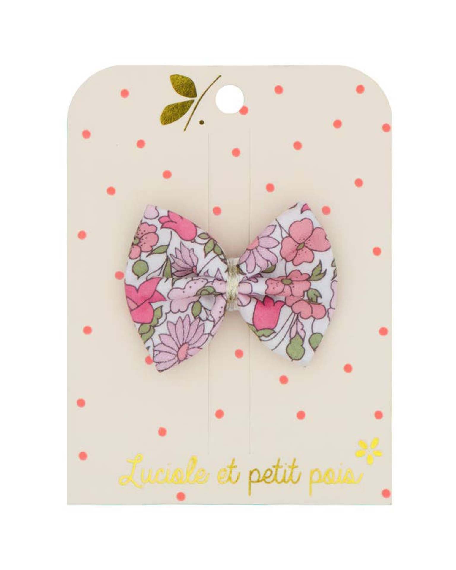 ribbon bow barrette in liberty poppy + daisy sparkling pink