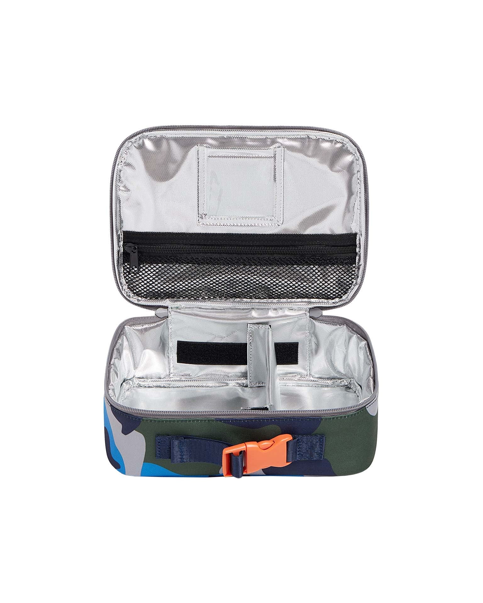 Introducing the Rodgers lunch box from State Bags! This lunch box features a fully insulated main compartment to keep your little ones lunch fresh and cool on the go. There is a small see through pocket, perfect for leaving notes or pictures to brighten their day. Designed to fit perfectly inside the Kane backpack making it easy to carry snacks and essentials for school or a day camp. It can fit a water bottle, sandwich, granola bar, banana and ice pouch. Also works for a bento box!