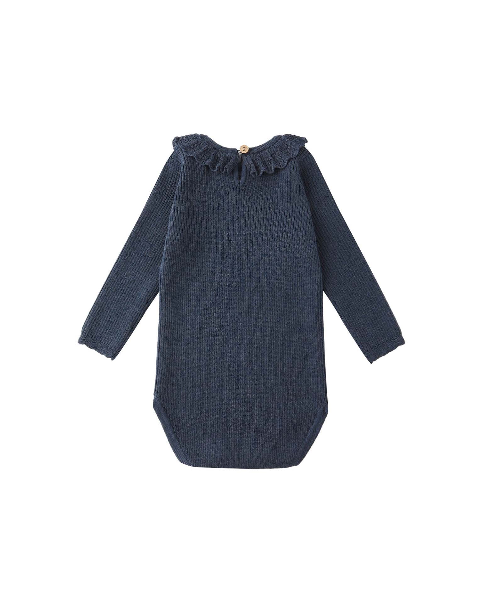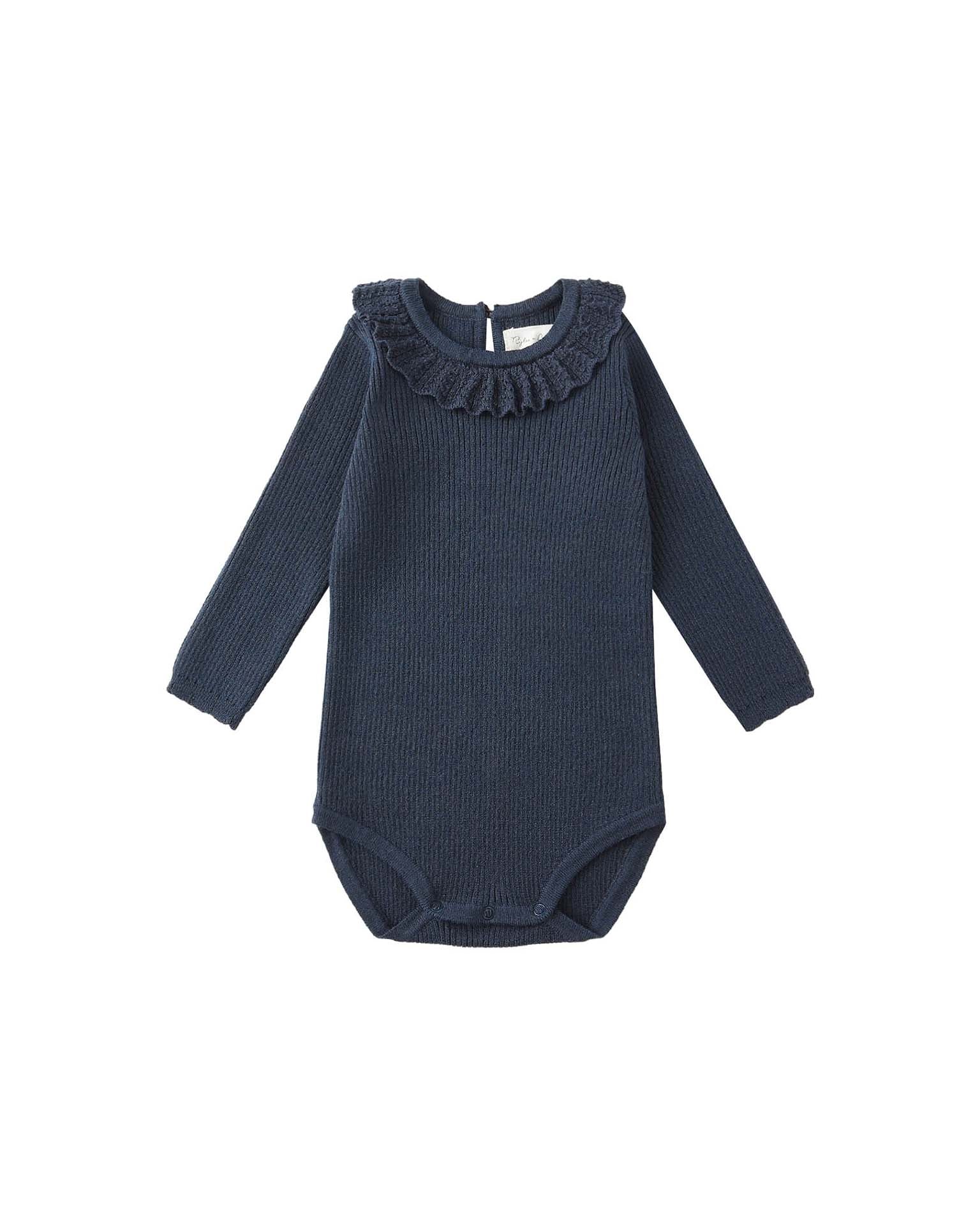 ruffle collar bodysuit in navy