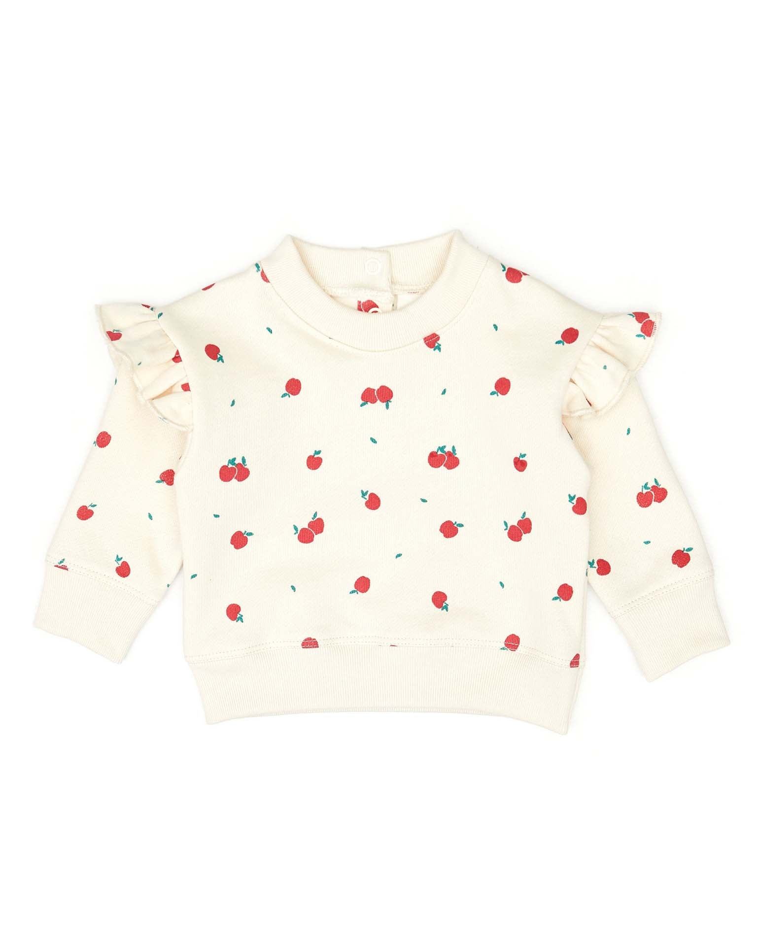 These ruffle pullover from Tun Tun are super sweet with an apple print. Pair it with the bobby pants for a matching set.