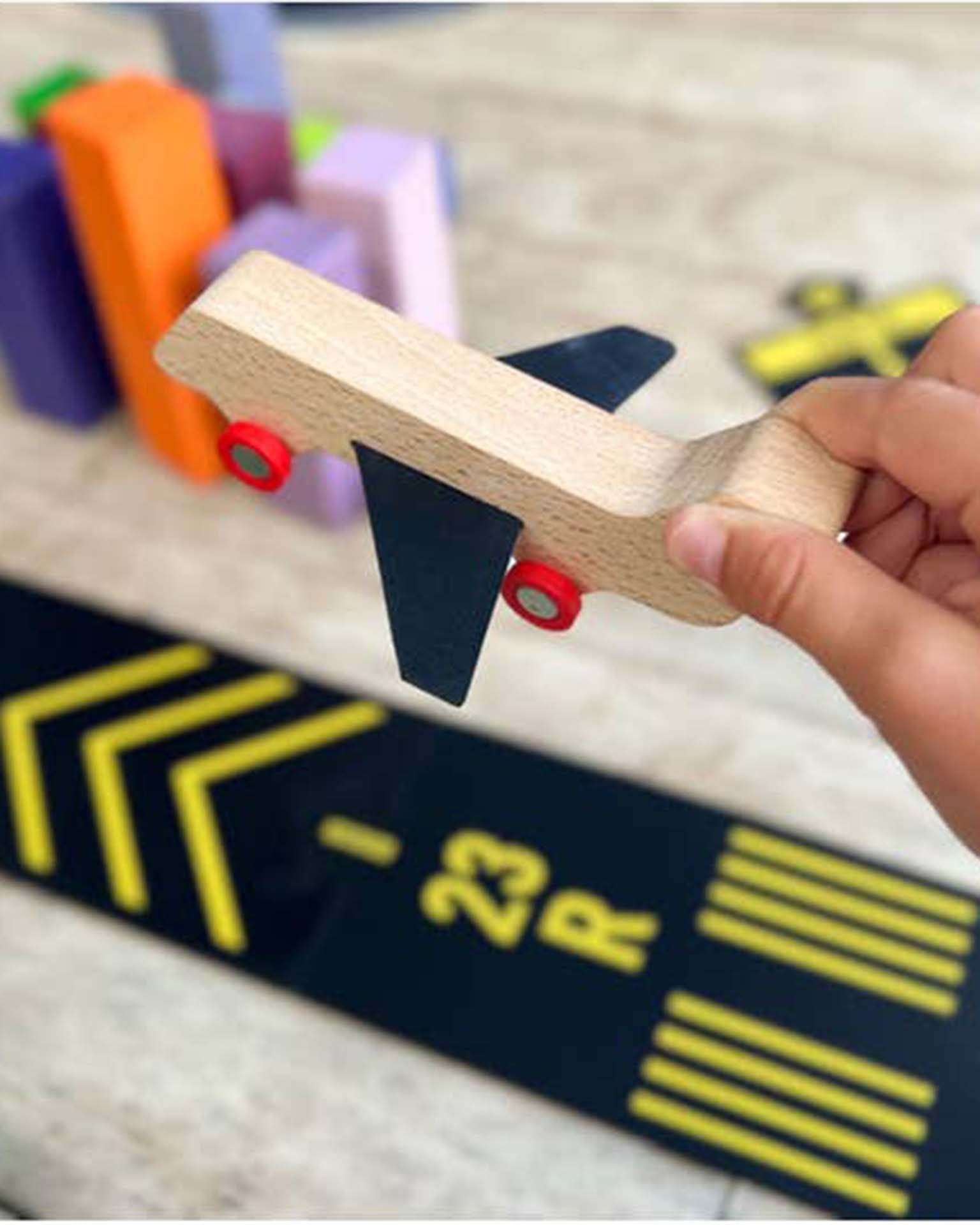 Spark your child's imagination and creativity with the new Runway from Waytoplay Toys. Watch as your little one transforms into a pilot with this airport themed set made of yellow screen printed graphics that are typical markings that can be seen on airports, like taxiways, take-off and landing strips and gateways.