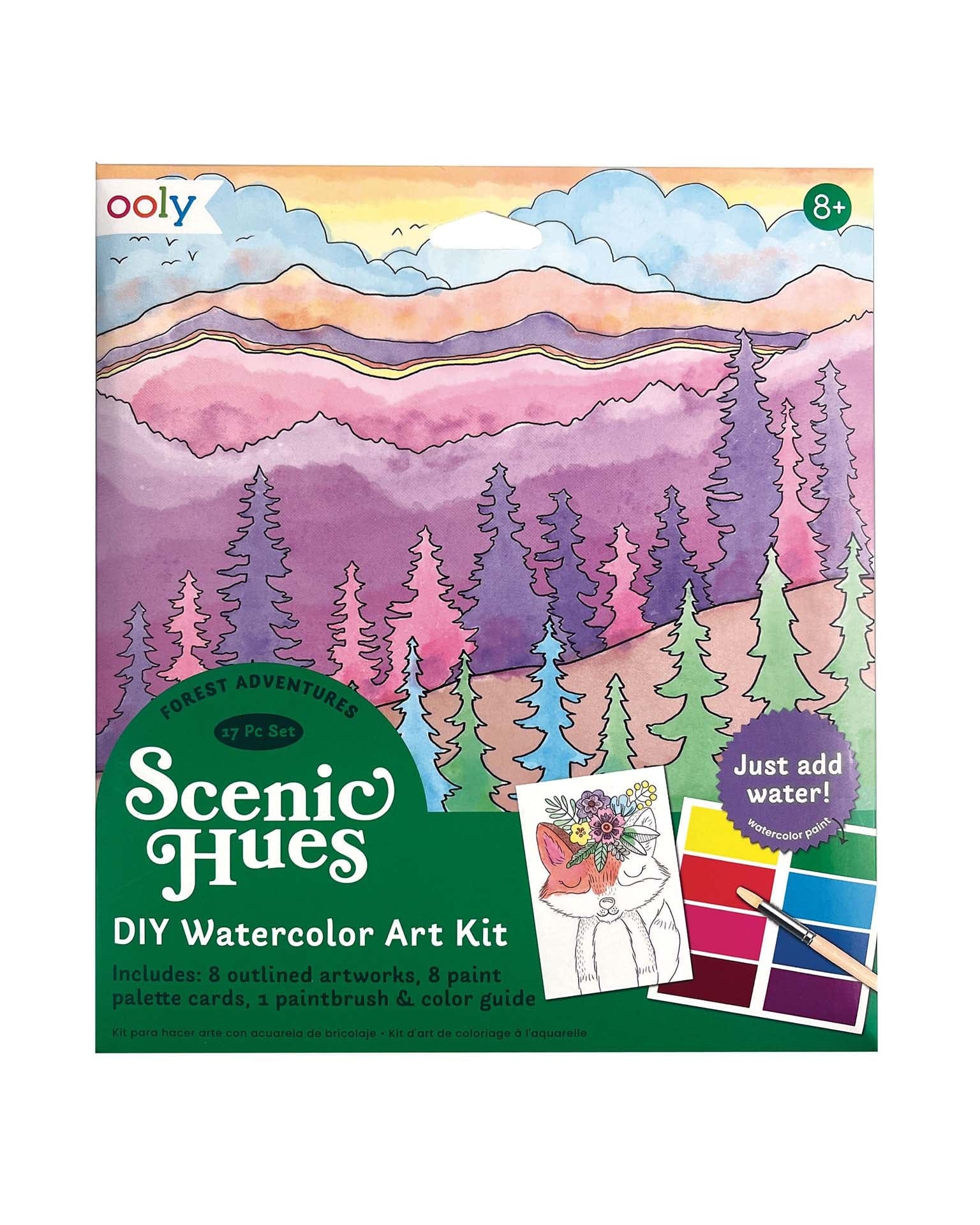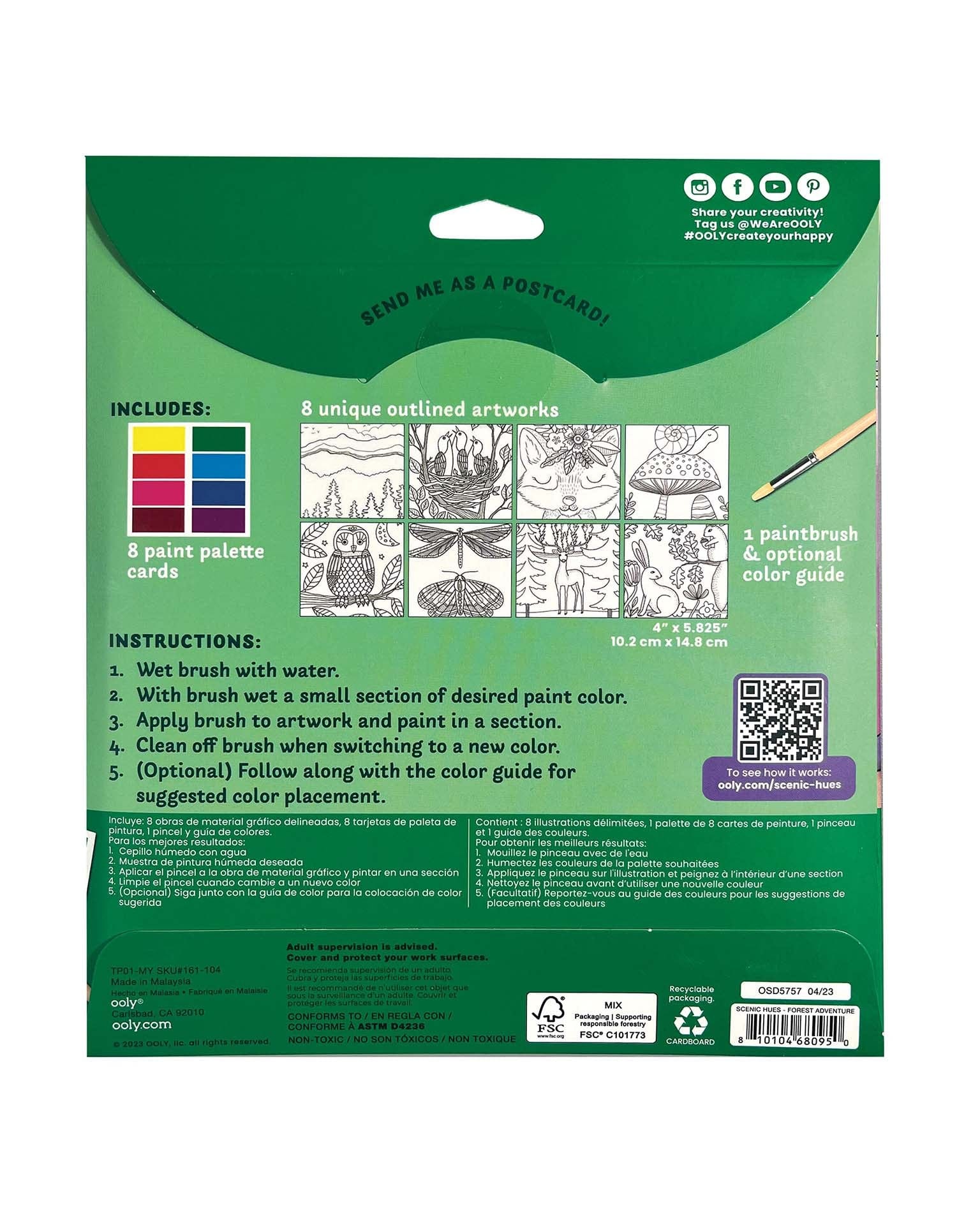 From the majestic evergreens, to baby birds tweeting in their nest, to owls perched high above the forest floor - the beautiful scenes are all there in this watercolor art kit, just waiting for your child’s colorful interpretation! With eight different forest themed outlines, eight coordinating color palettes, a paint brush, and an optional color guide, your budding artist will have everything they need to begin creating their very own watercolor paintings. Each watercolor paint card can be used as a postcard, so when your kiddo is finished, they can mail their masterpieces out to friends and family. These can also be used as perfectly sized, unique invitations!