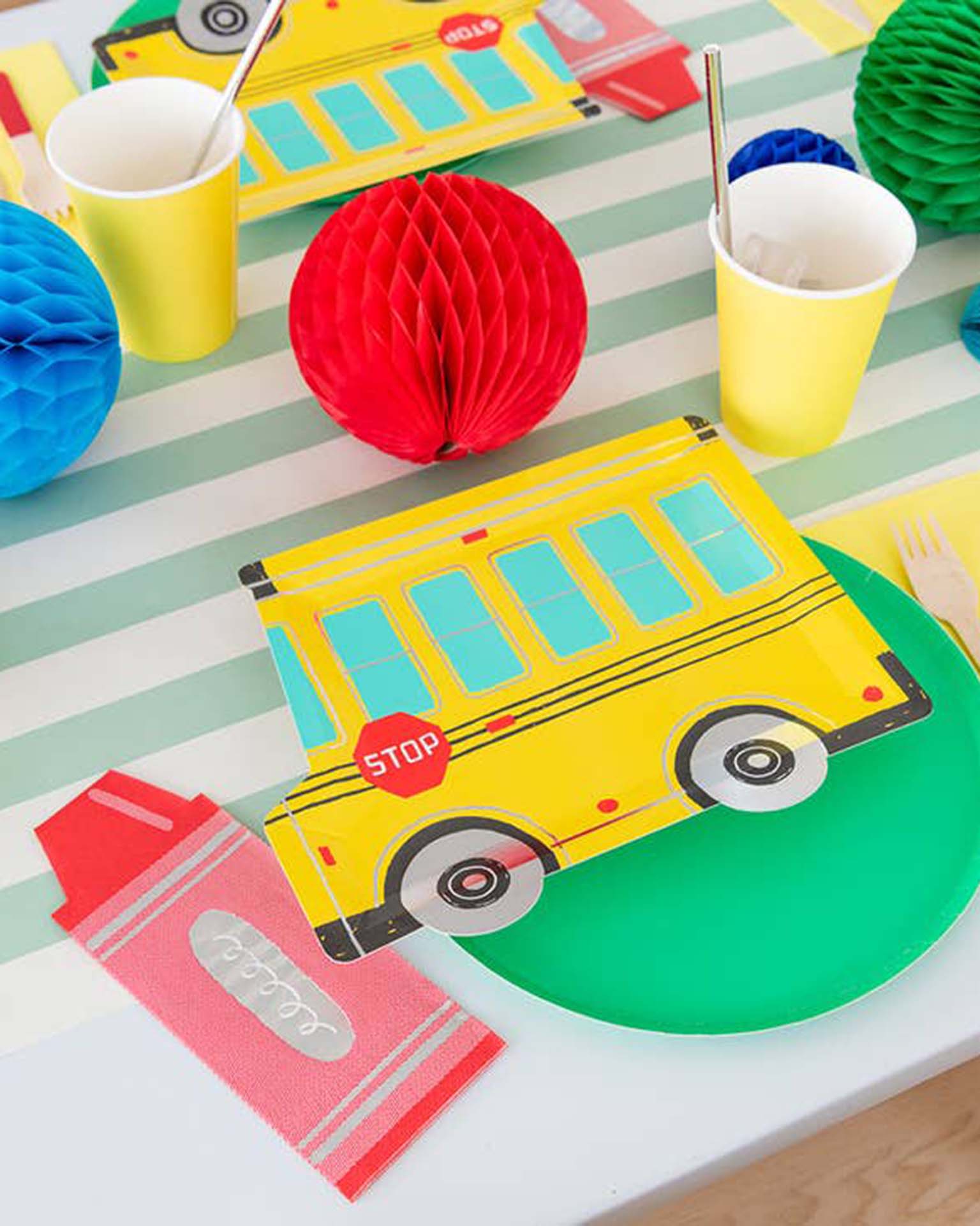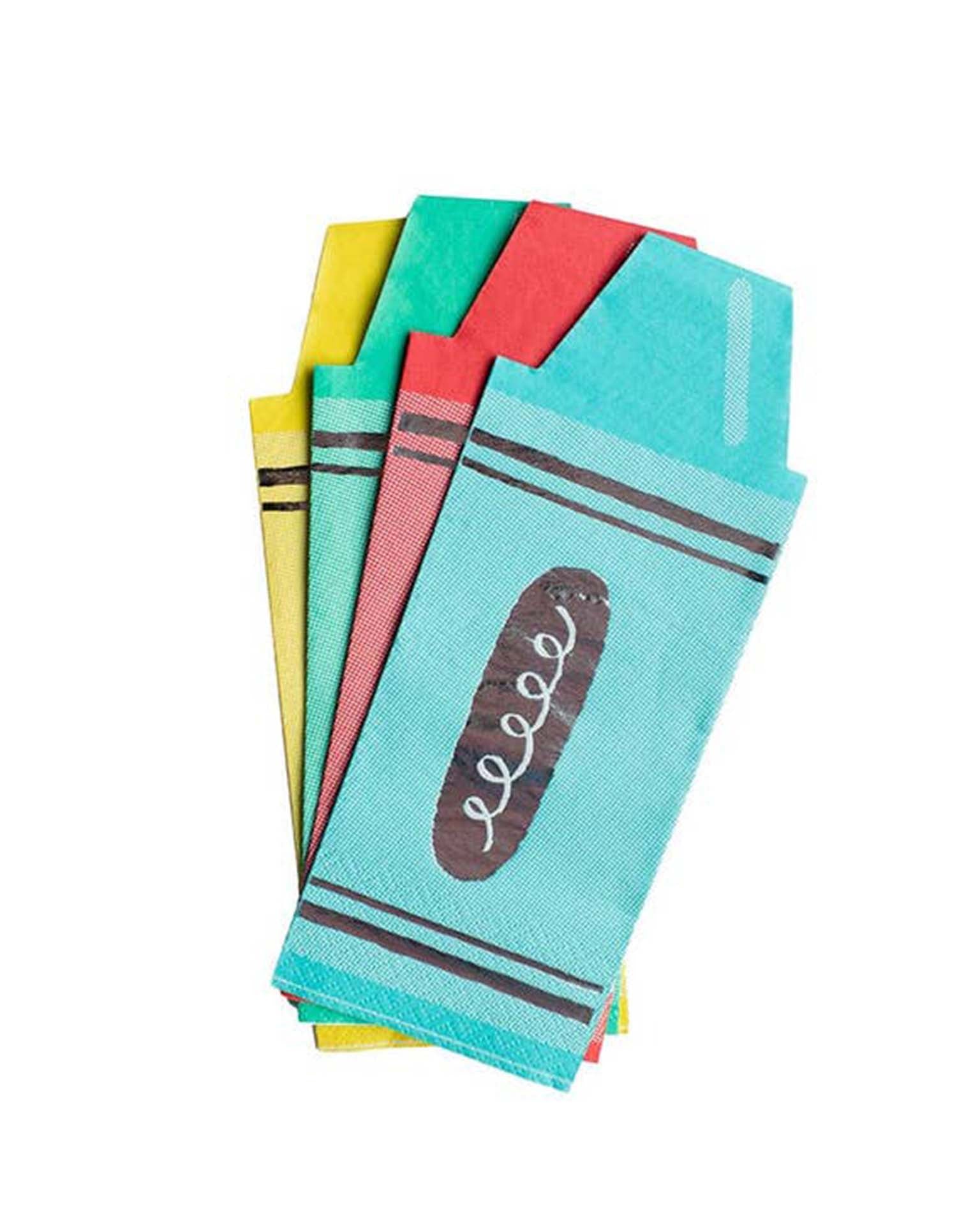 The two best days of school: the first and the last! Our "school days" collection is perfect for those milestone days, and every school day in between! This assorted pack of crayon napkins features 4 colors: yellow, green, red and teal with silver foil detailing.