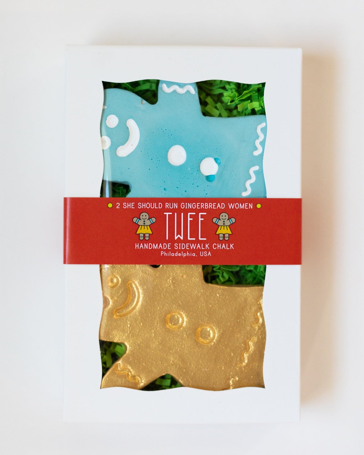 A woman’s place is in all the houses - even a gingerbread house! This set of handmade chalk from Twee includes 2 gingerbread women cutouts — Perfect for the sidewalk, driveway or street!