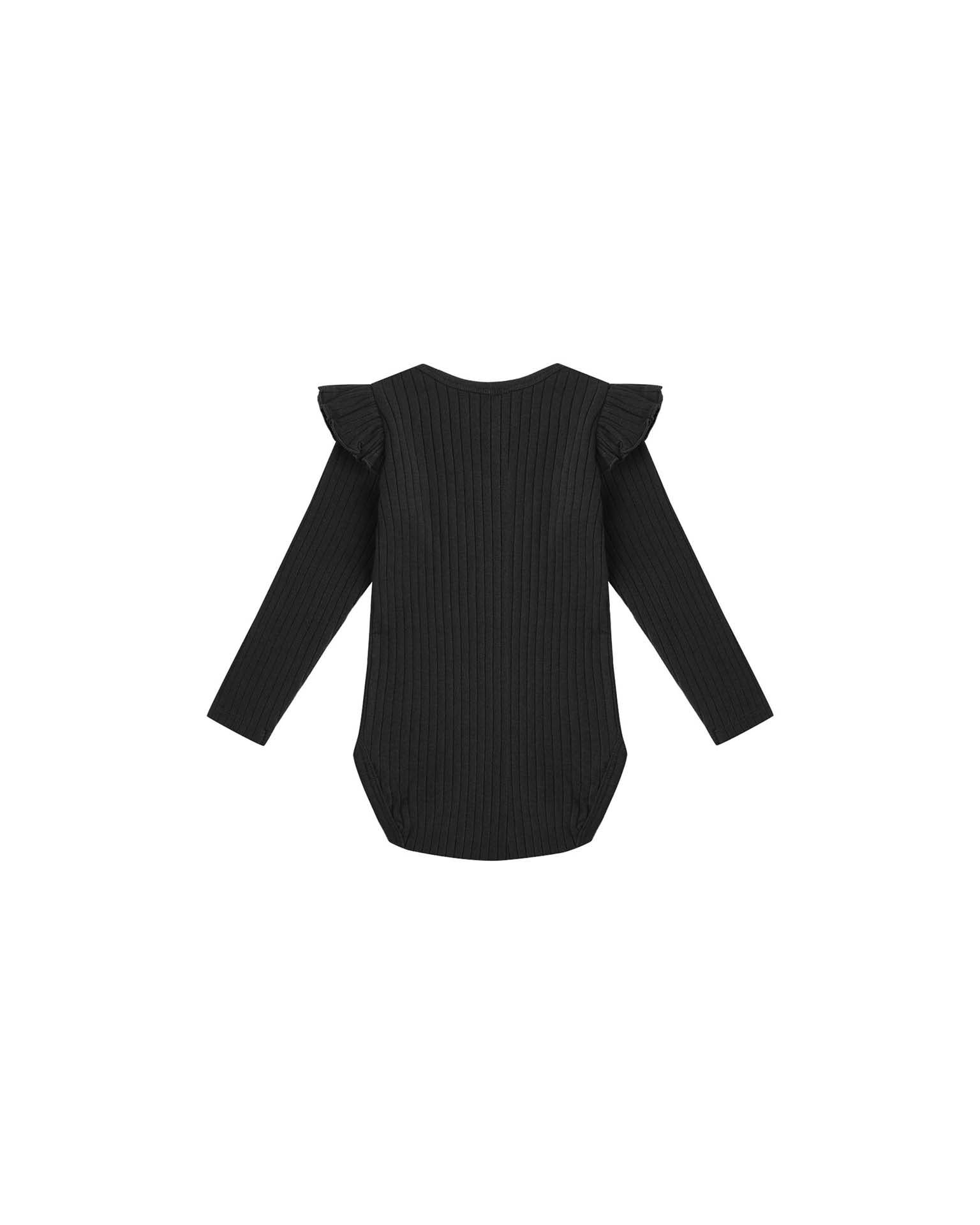 This long sleeve bodysuit is a must-have for your little gal this season! Designed with sweet shoulder ruffles and snaps at the neck and bottom for easy changes. Pair with our leggings to complete the look.
