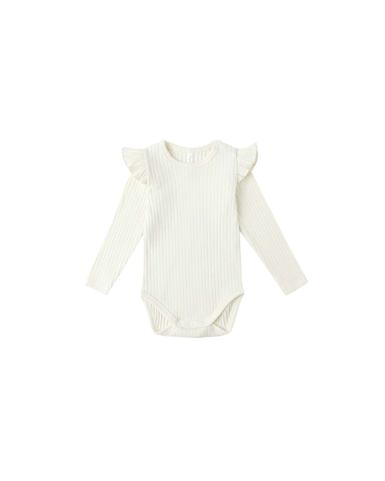 shoulder ruffle bodysuit in ivory