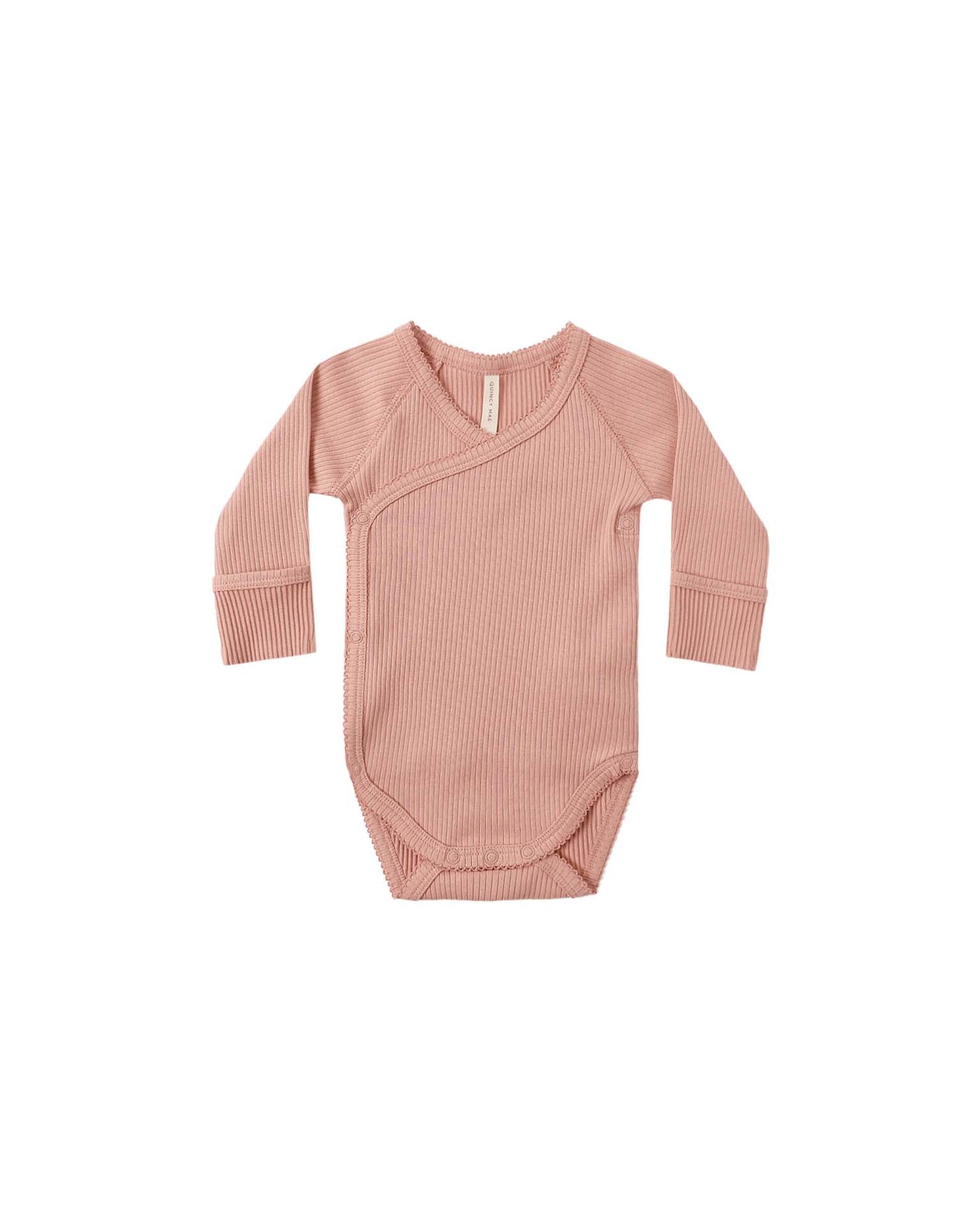 Side snap bodysuit made out of our velvety soft organic brushed fabric. Snaps at inside and along inseam for the coziest fit with fold-over hand mitts.