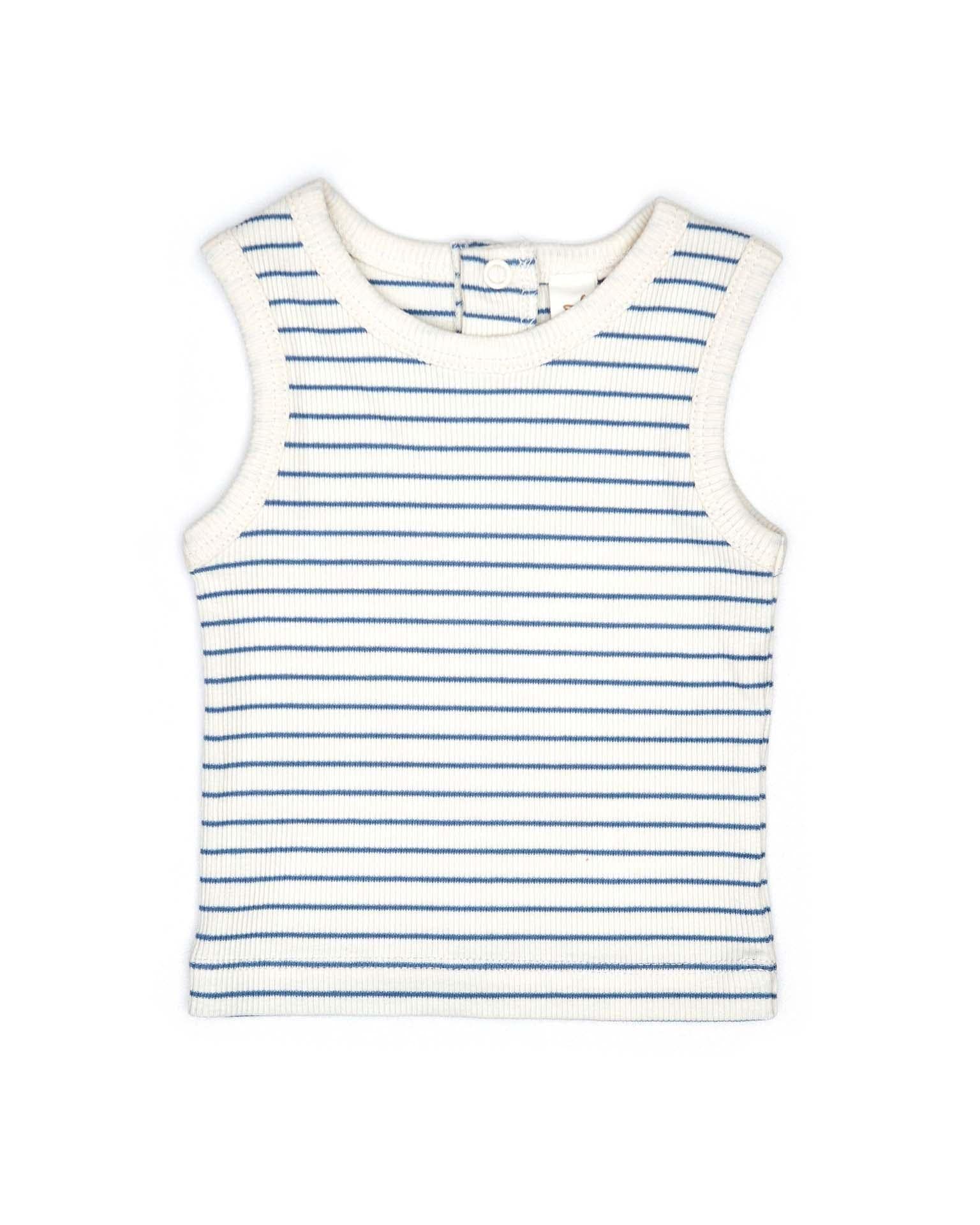 sleeveless top in blue heaven stripes