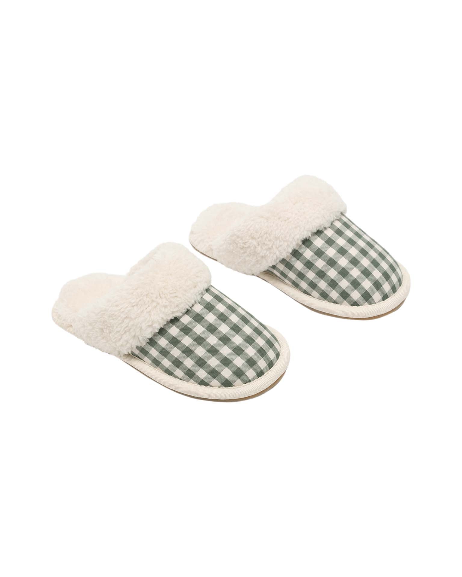 slippers in evergreen gingham