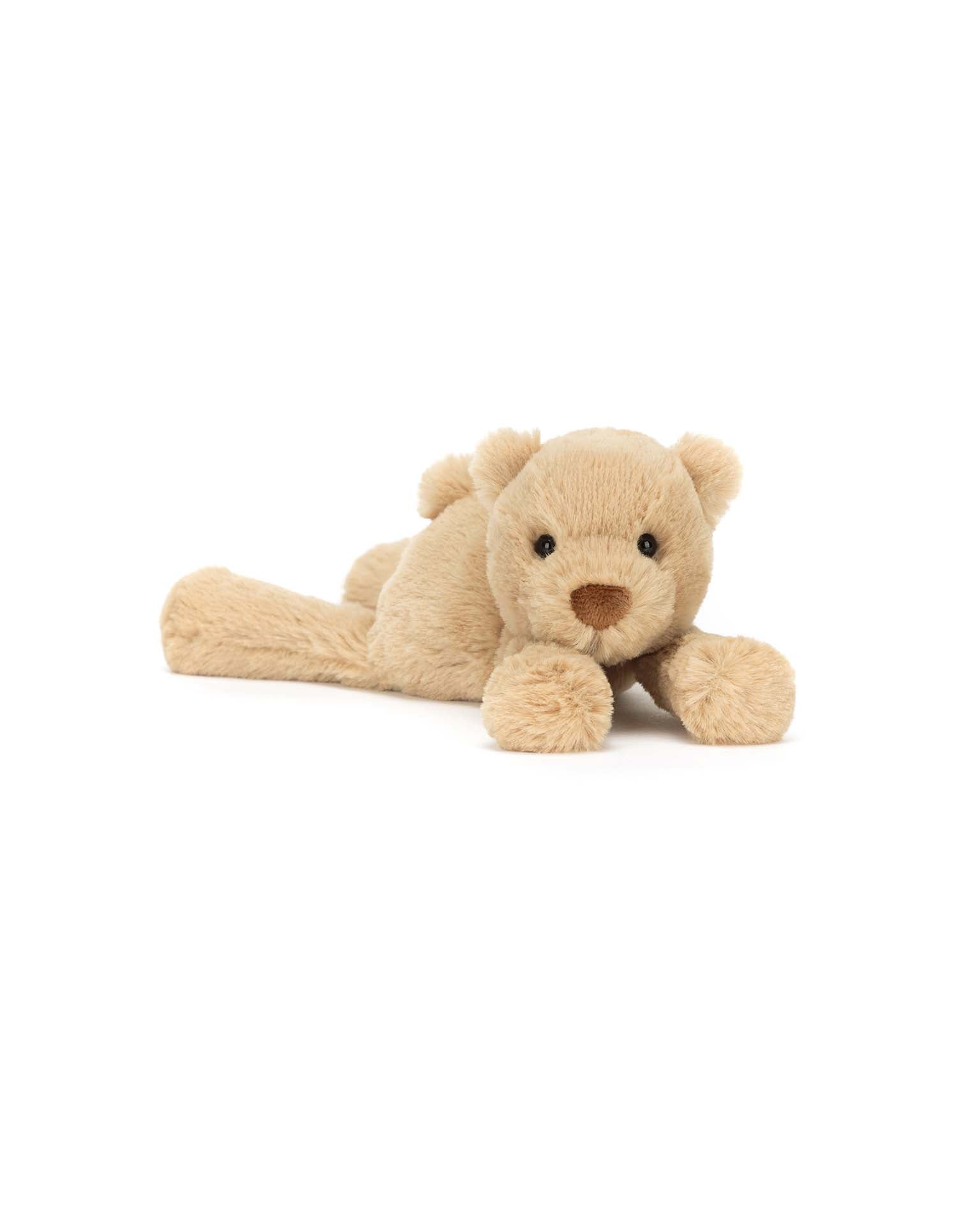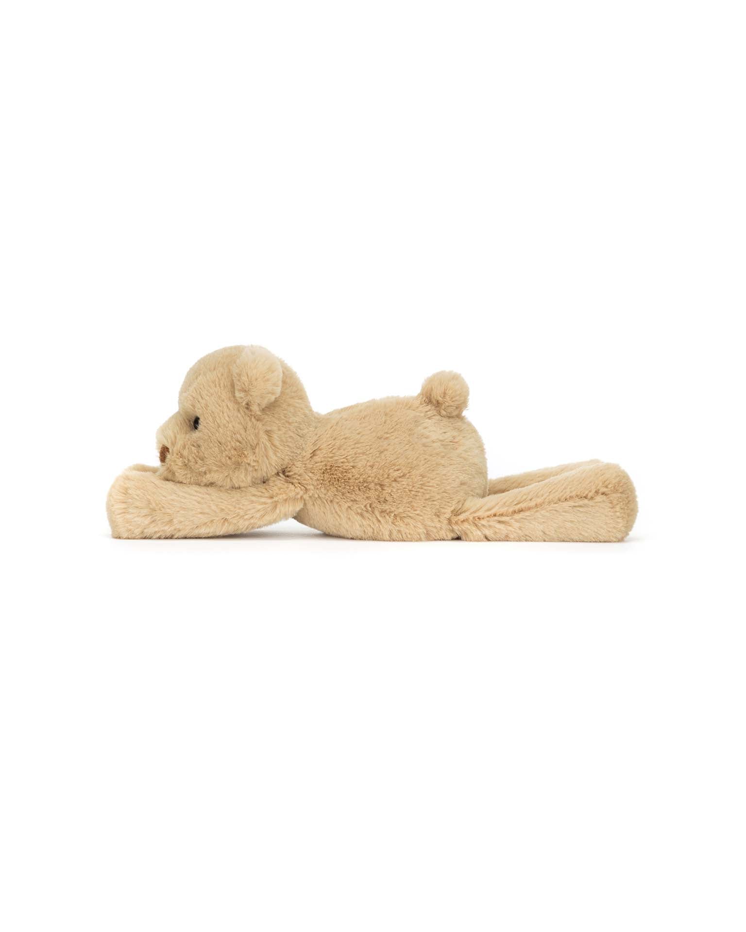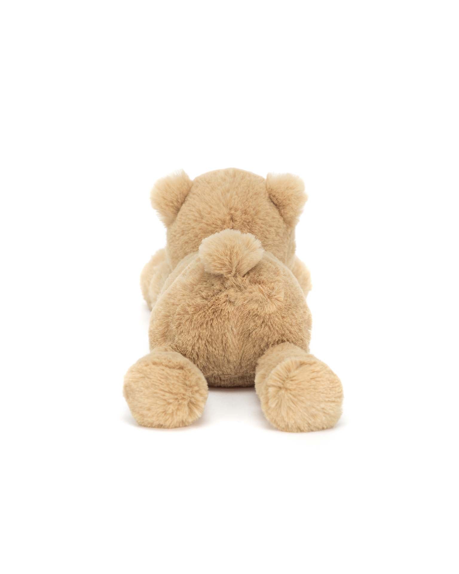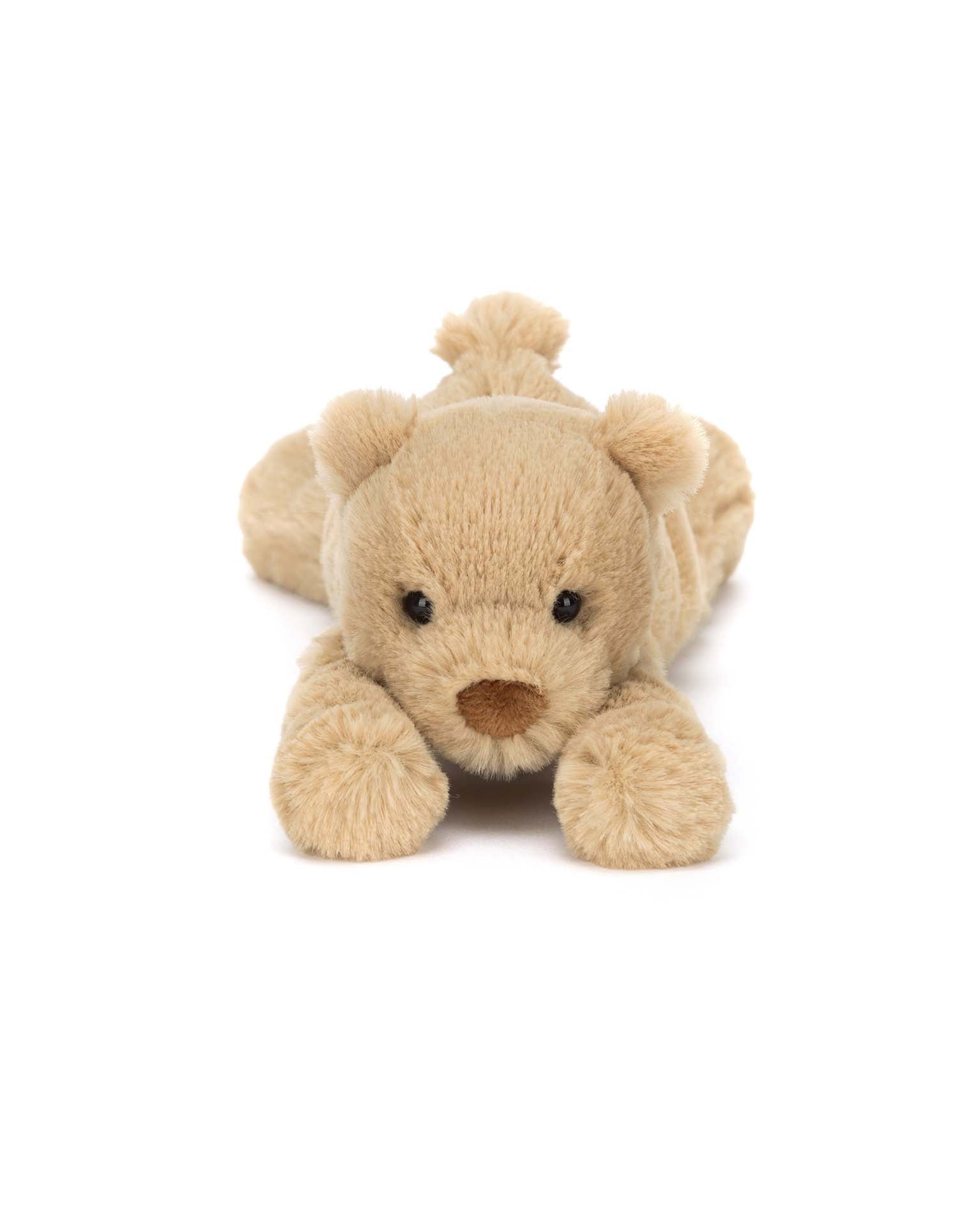 Smudge Bear is ready to snooze. It's no surprise that this teddy bear gives a great hug, with silky soft fluff in shades of honey,and podgy trumpet paws. This peaceful cub is ready to snuggle up.
