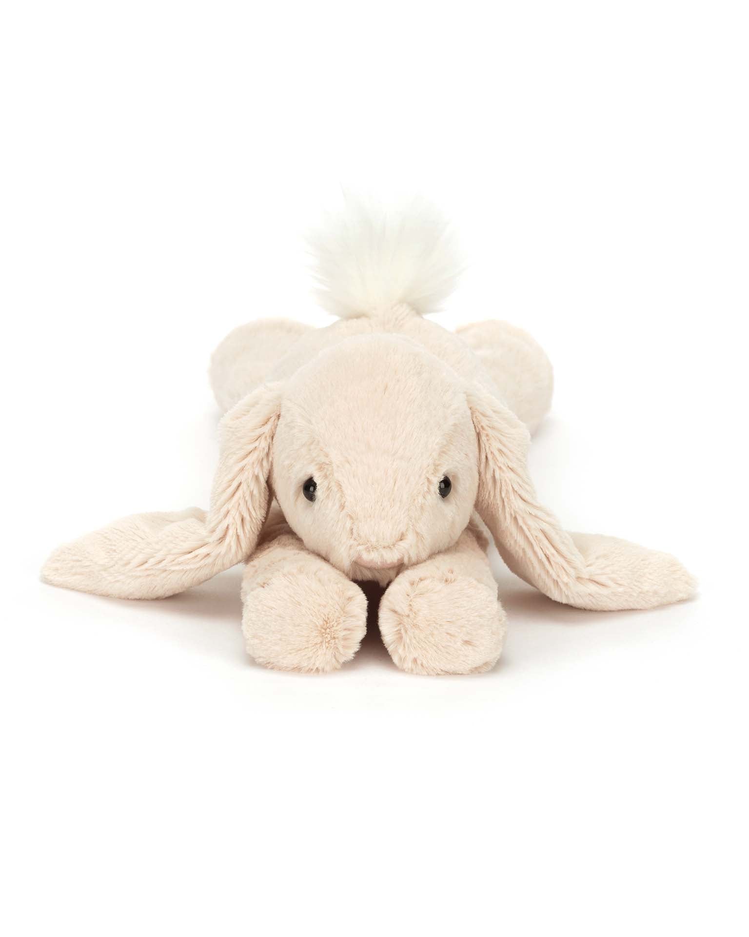 Smudge Rabbit is such a sleepy sweetie - always sprawling out, lazing on the bed or rug! Scrumptiously soft in oatmeal fur, this lop-eared lazer just captures the heart. An incredibly lopsy and loving companion, Smudge is a great gift for any bouncing baby. Bonnets and bobtails - we like it!