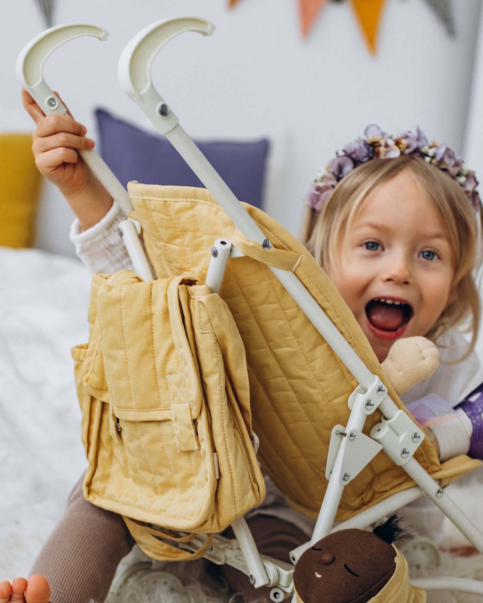 The Sollie Stroller Honey – the perfect solution for encouraging toddlers to explore on their own two feet! Designed by Olli Ella, this kids' doll stroller is not just a toy but a valuable tool in nurturing independence and creativity in your little one.