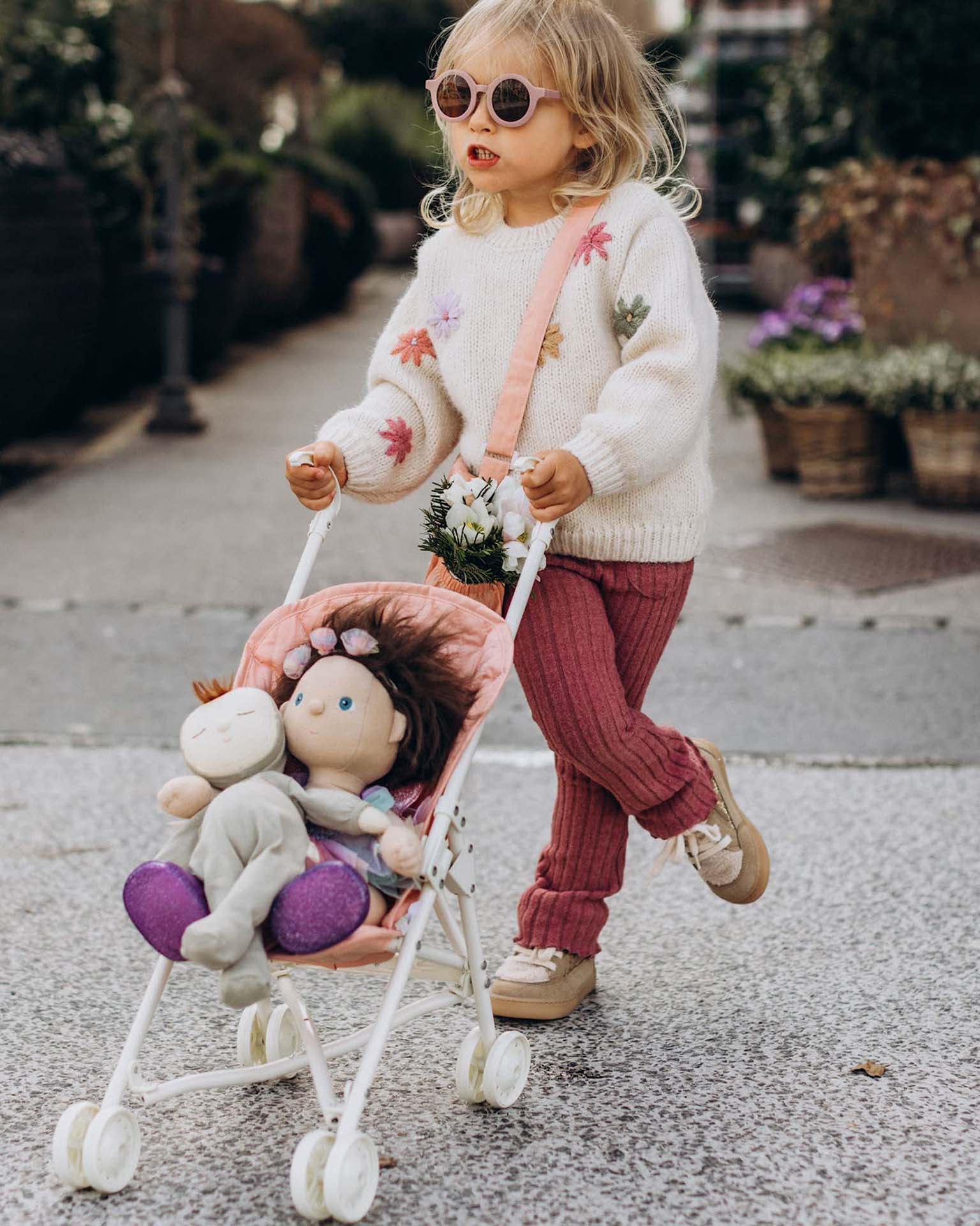 The Sollie Stroller Rose – the perfect solution for encouraging toddlers to explore on their own two feet! Designed by Olli Ella, this kids' doll stroller is not just a toy but a valuable tool in nurturing independence and creativity in your little one.