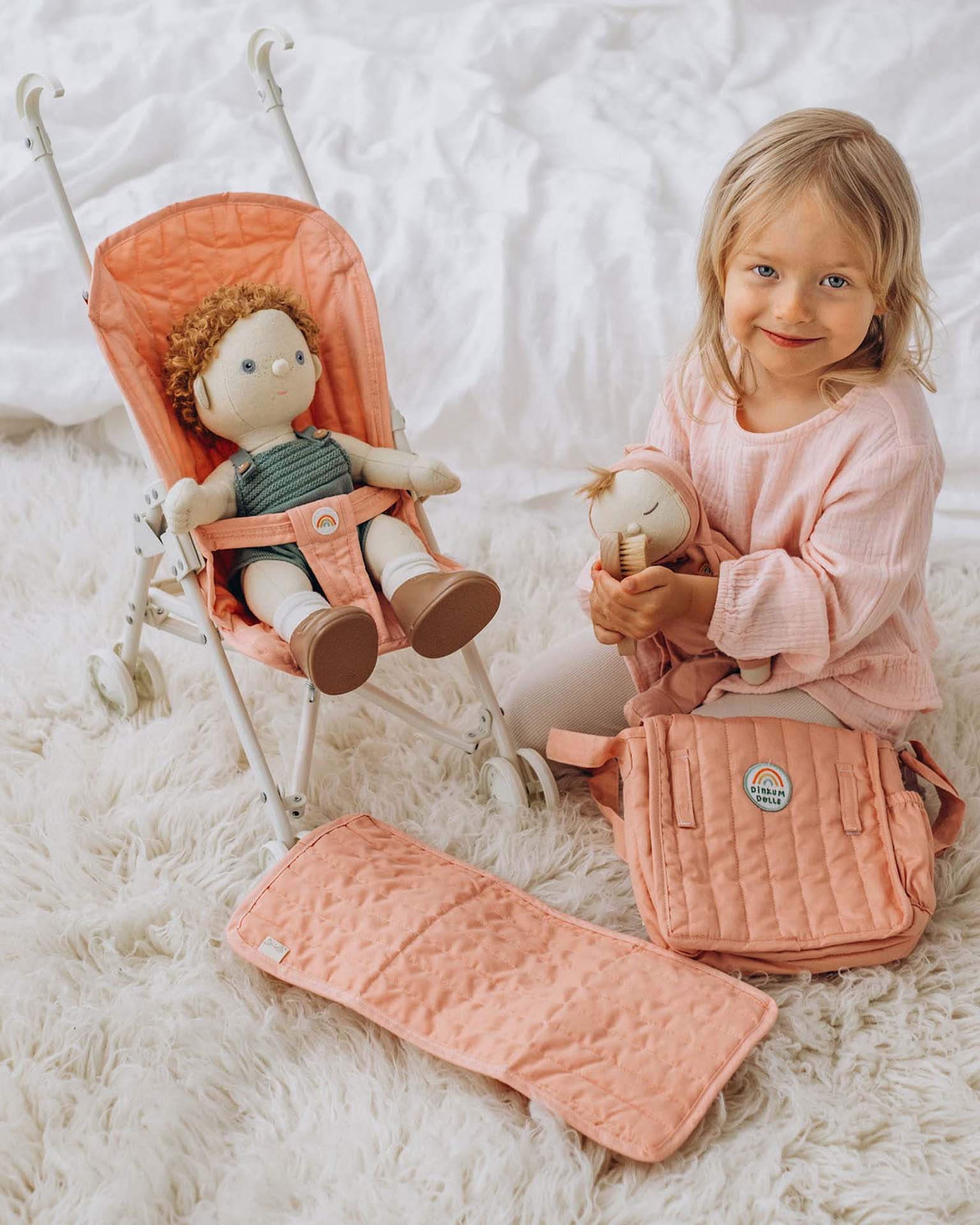 Our best parenting hack for encouraging our toddlers to walk (instead of being carried) has always been to give them something to push along (or pull!) — and now for our latest member of the Olli Ella family — The Sollie Stroller. Toddlers can pop their favorite Dinkum in the seat and head out (or around the living room) for an adventure or two. The Sollie Stroller makes the perfect children's doll pram, which is an essential doll accessory to have in your collection. Watch as your child takes their favourite Dinkum Doll for a stroll, teaching the importance of caregiving through imaginative play.