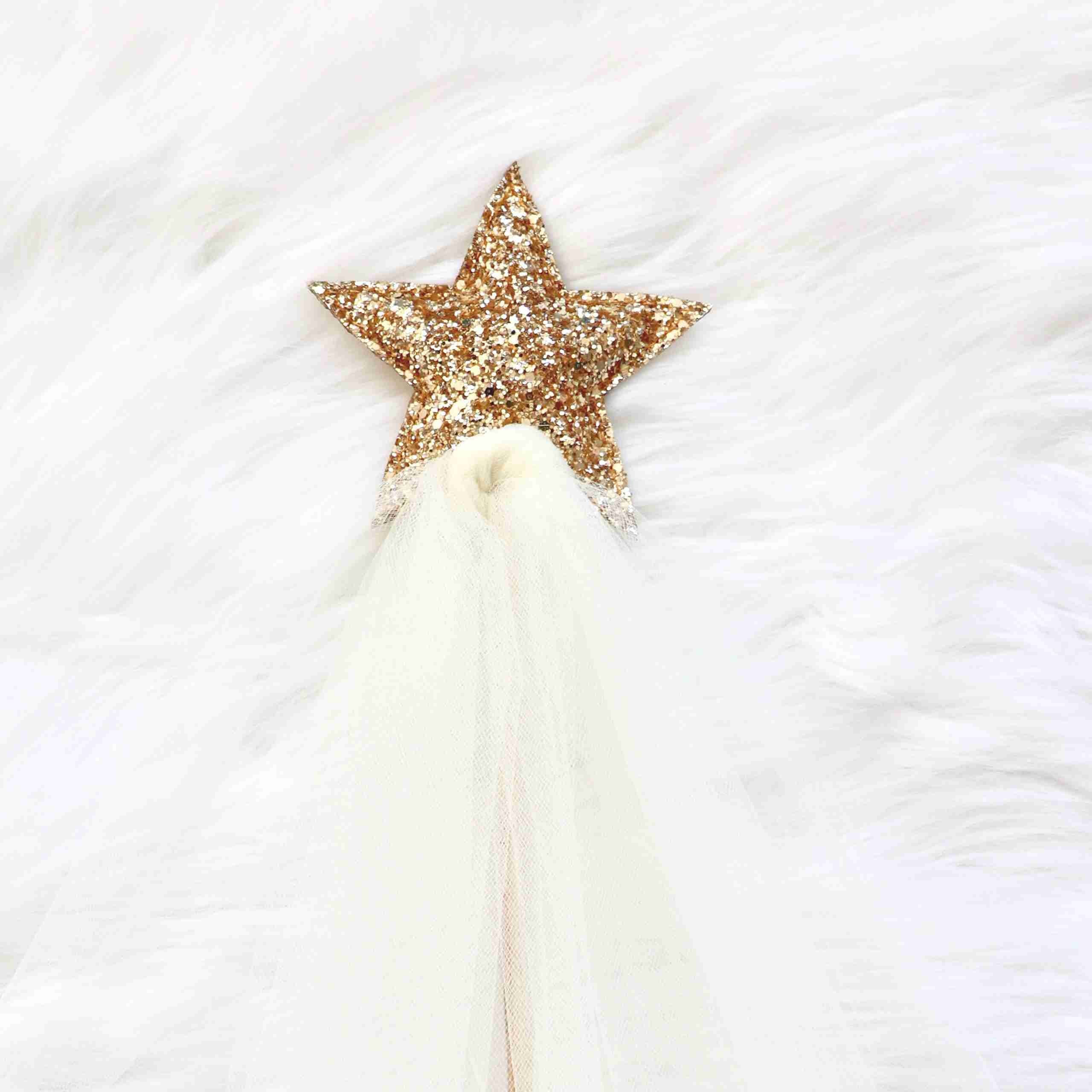 Magic wand handmade for a princess costume, kids gift, or everyday play. Each magical wand is hand-crafted from super sparkly glitter fabric and a wooden stem. Made with love in our Brooklyn studio and made to last.