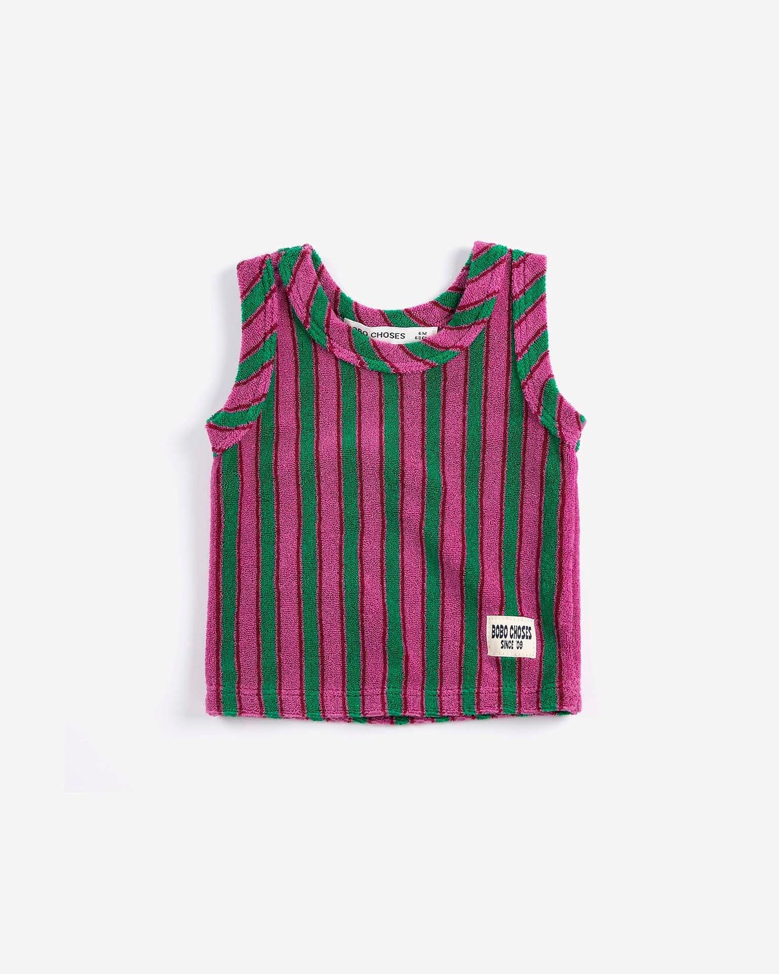 Bobo Choses SS26 – Pickles is a celebration of slow, rebellious summers — where routines break, hands stain with berries, and sudden storms become part of the fun. Inspired by the small wonders of countryside days — the magic tucked inside glass jars, the hum of a TV where a little dog named Pickles who becomes a hero after finding a trophy that was stolen long ago, the thrill of dusty treasures — the collection captures the imperfect, playful moments that make life unforgettable. It’s a love letter to the beauty of slowing down, to the adventure hidden in the everyday, and to the stories we create when we let curiosity lead the way. A tribute to berry-filled baskets, sudden rain, and the art of savoring summer.