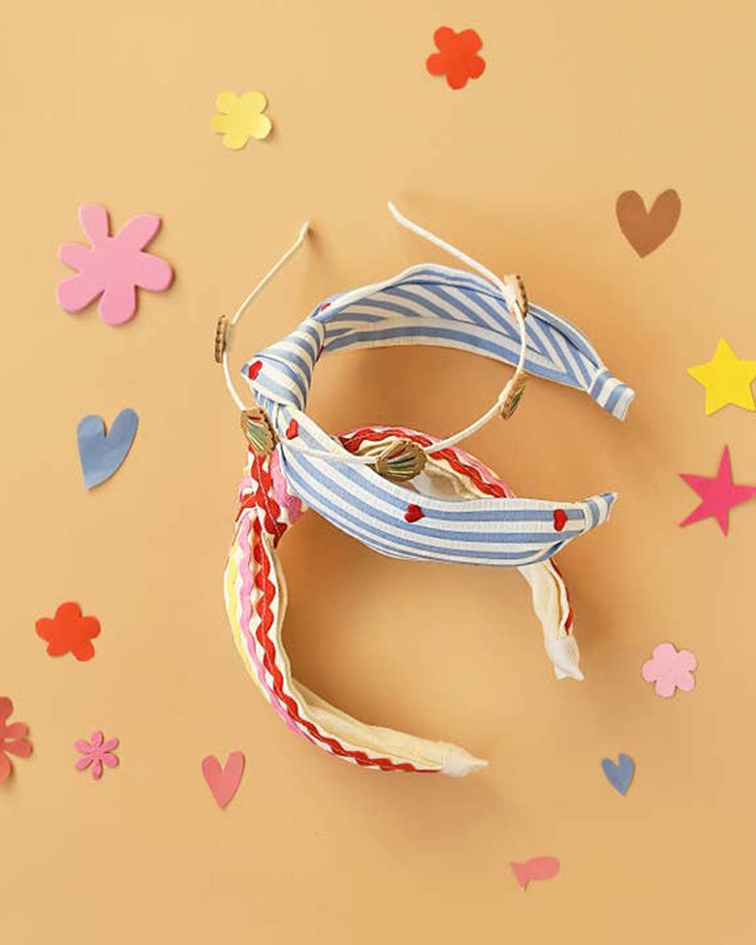 stripy embroidered heart knotted headband