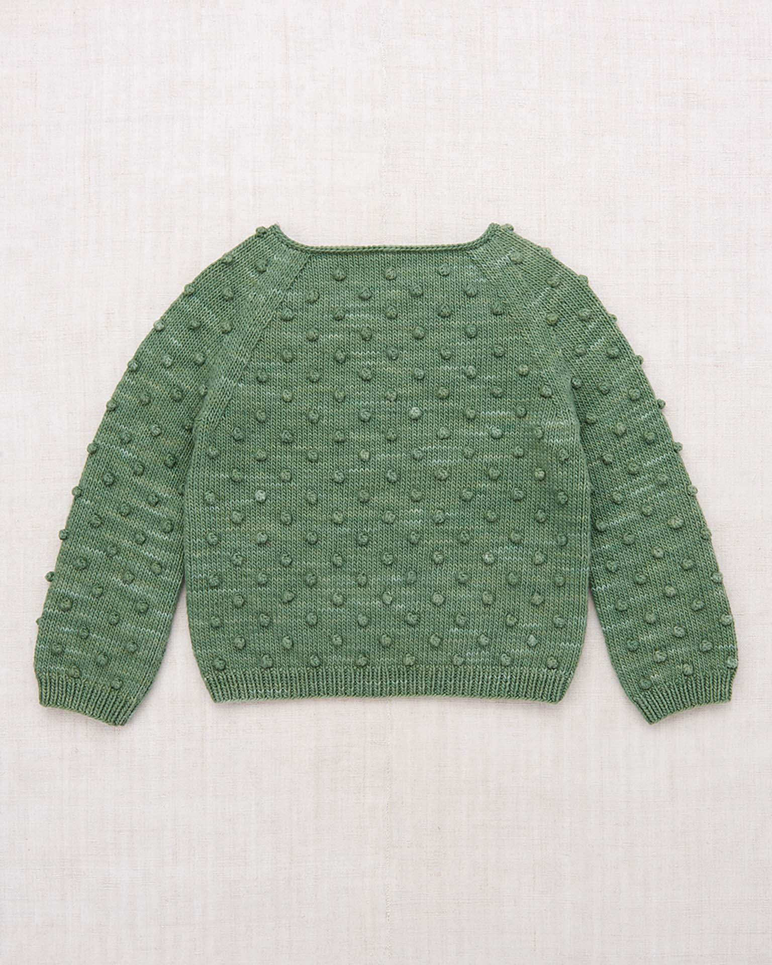 Misha & Puff's signature hand-knit sweater in a heavier-weight Merino wool, with an all-over popcorn stitch. Featuring a rolled bateau neckline, ribbed cuffs and hem, and horn button closure at the back neck. The hand-dyeing process of our yarn introduces beautiful variations and subtle nuances, making each garment truly unique.