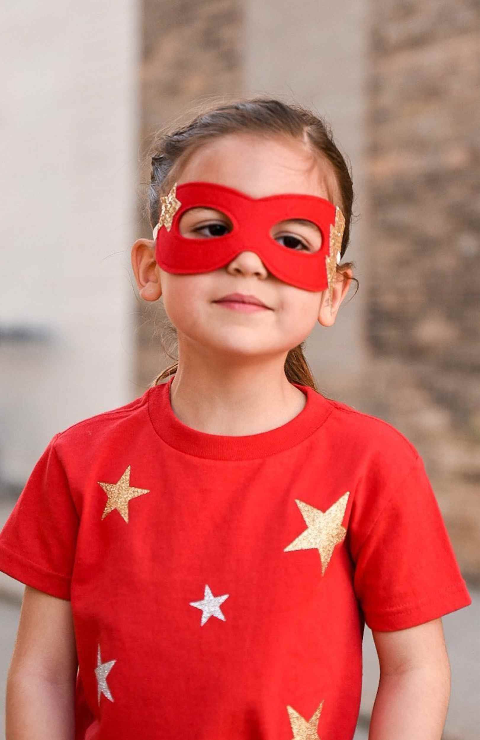 Kids superhero costume mask that is sure to make any costume or outfit extra special. Handmade in USA, the mask is made from a high-quality double-reinforced felt fabric. Unisex and made to last.