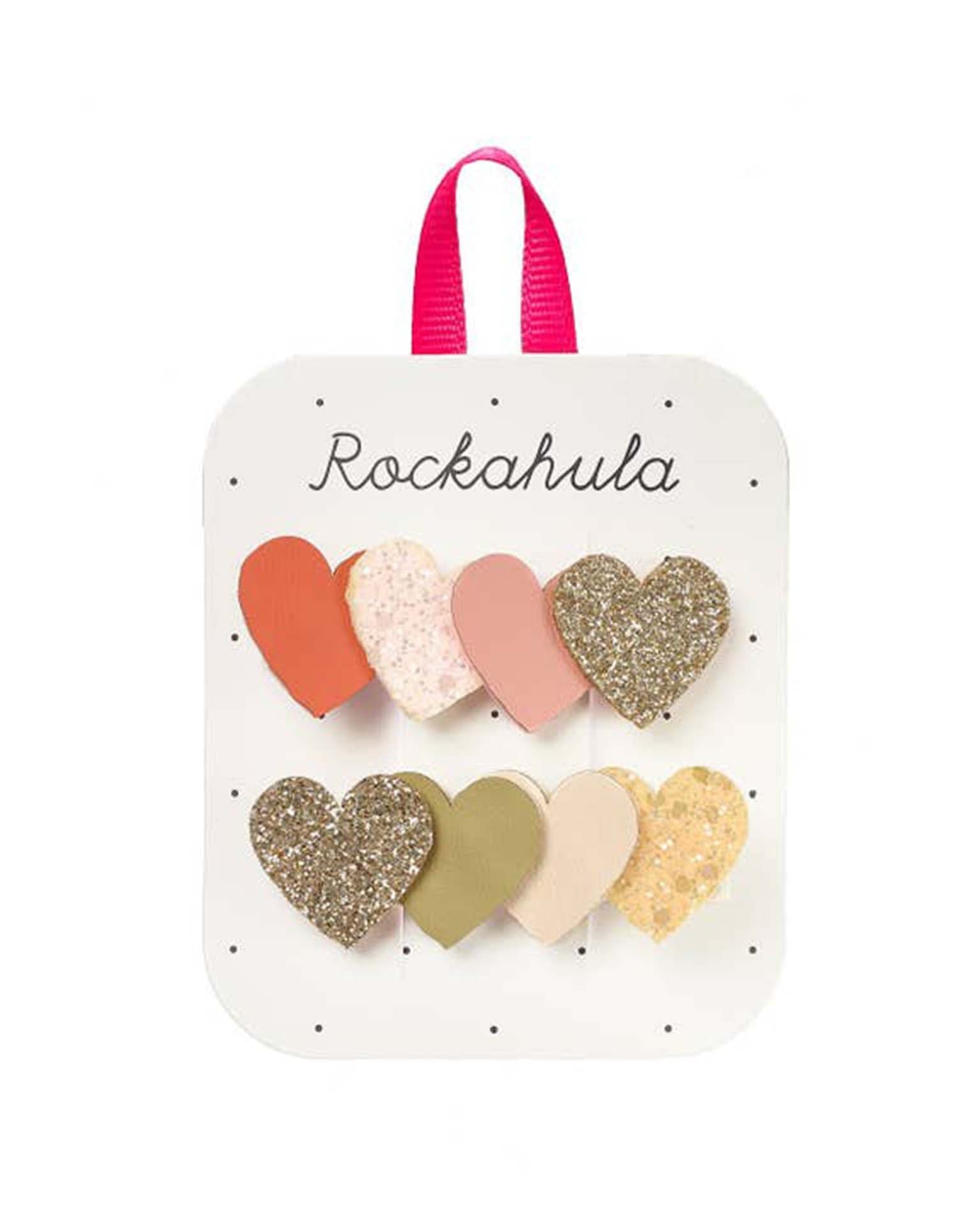 Our sweet heart clips are totally adorable! This set of two salon bar clips are wrapped in soft grosgrain ribbon, and are adorned each with row of glittery and PU love hearts in neutral colours! The perfect accessory for sparkle-loving sweethearts!