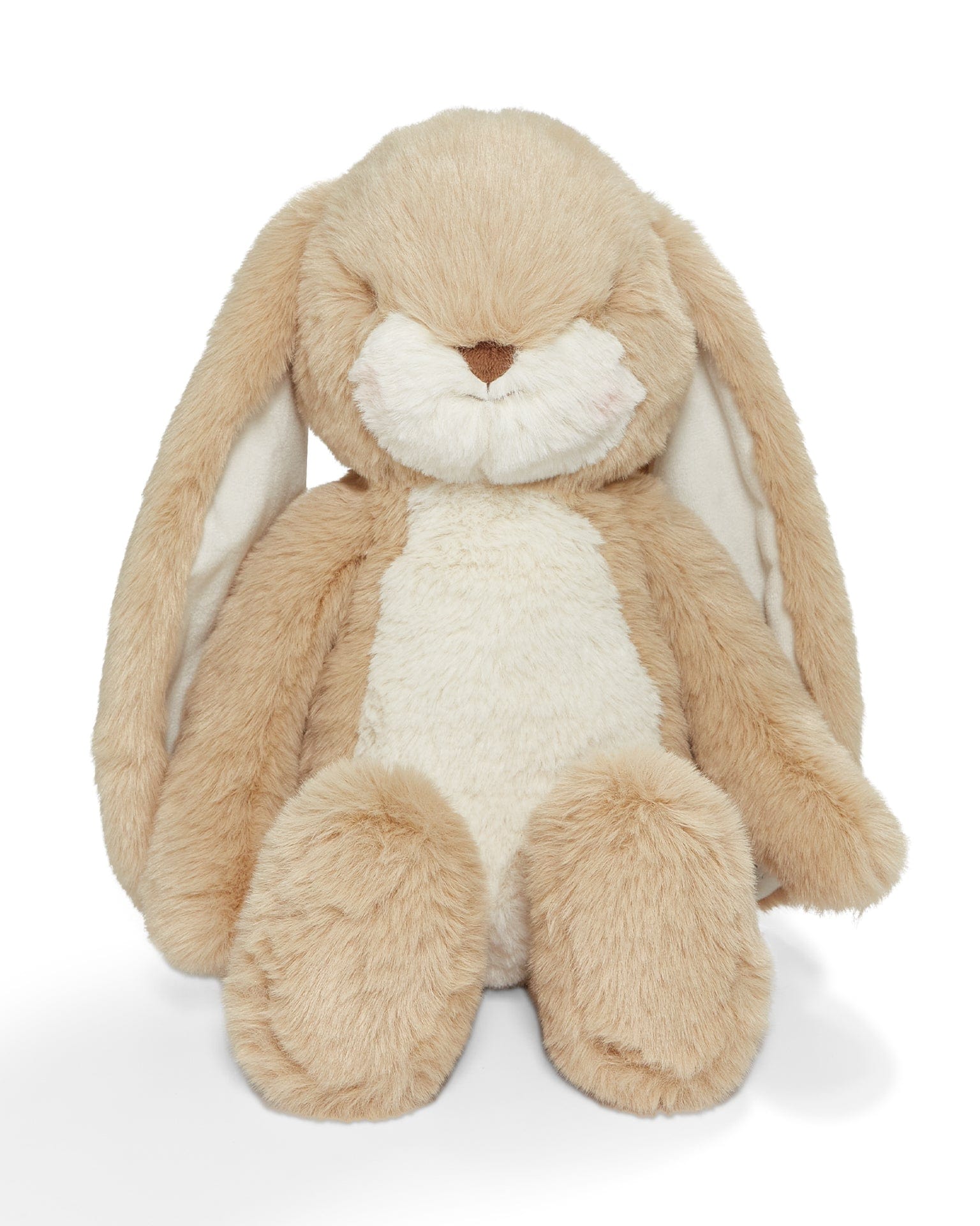 Sweet Floppy Nibble Bunny is sweet, tender and oh-my-gosh unbelievably soft, and now floppier than ever. This stuffed animal has a hand-embroidered face, pink cheeks, and big fluffy tail. Features yummy Almond Joy cream and warm white fur, with velour-lined ears perfect for personalizing. This plush bunny will become your best friend indeed.