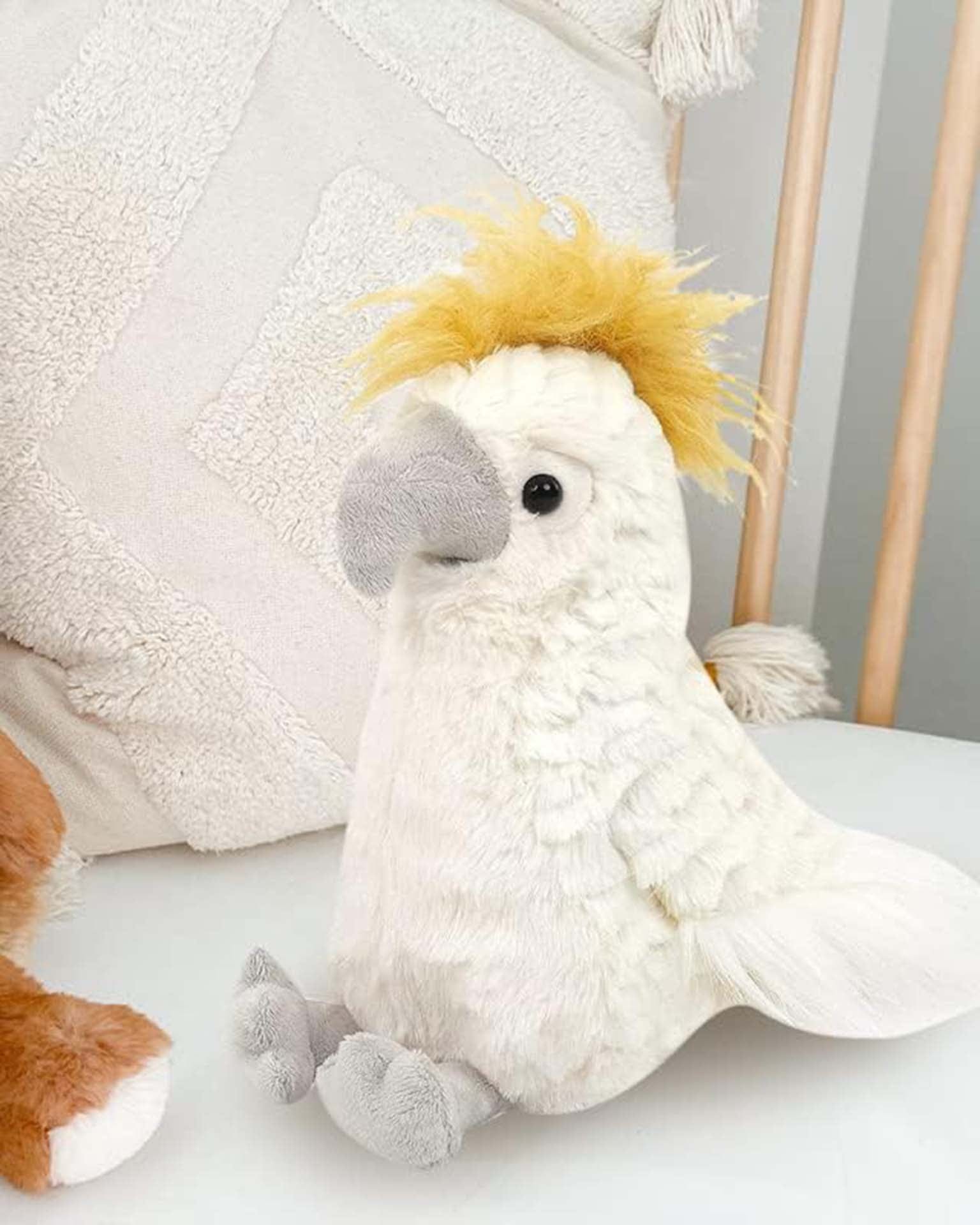 Great for flying about and sharing adventures, Tallulah Cockatoo bird plush is full of cuddles. With her white feathers and yellow plume, Tallulah is a unique gift certain to bring a smile and tons of fun!
