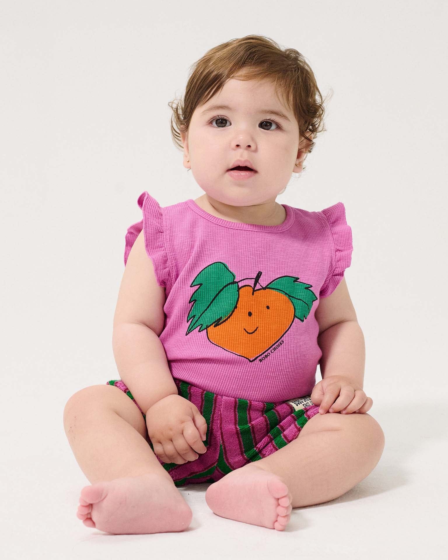 Bobo Choses SS26 – Pickles is a celebration of slow, rebellious summers — where routines break, hands stain with berries, and sudden storms become part of the fun. Inspired by the small wonders of countryside days — the magic tucked inside glass jars, the hum of a TV where a little dog named Pickles who becomes a hero after finding a trophy that was stolen long ago, the thrill of dusty treasures — the collection captures the imperfect, playful moments that make life unforgettable. It’s a love letter to the beauty of slowing down, to the adventure hidden in the everyday, and to the stories we create when we let curiosity lead the way. A tribute to berry-filled baskets, sudden rain, and the art of savoring summer.