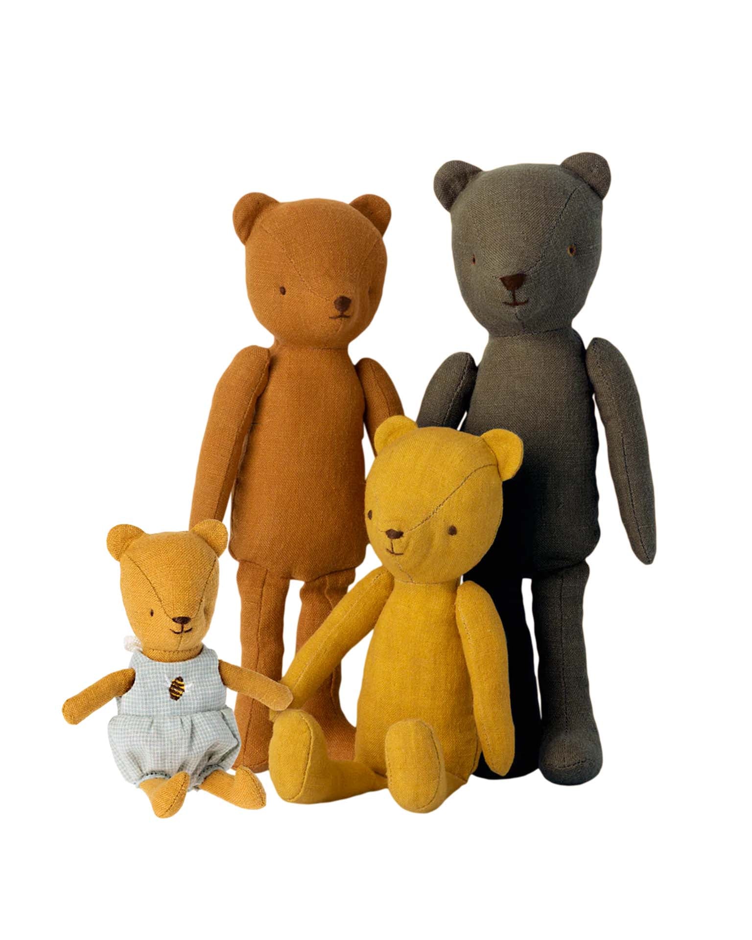 The Teddy bear family is a sweet collection of 4 different sizes of Teddy bears. They are made of soft linen and have a vintage look.