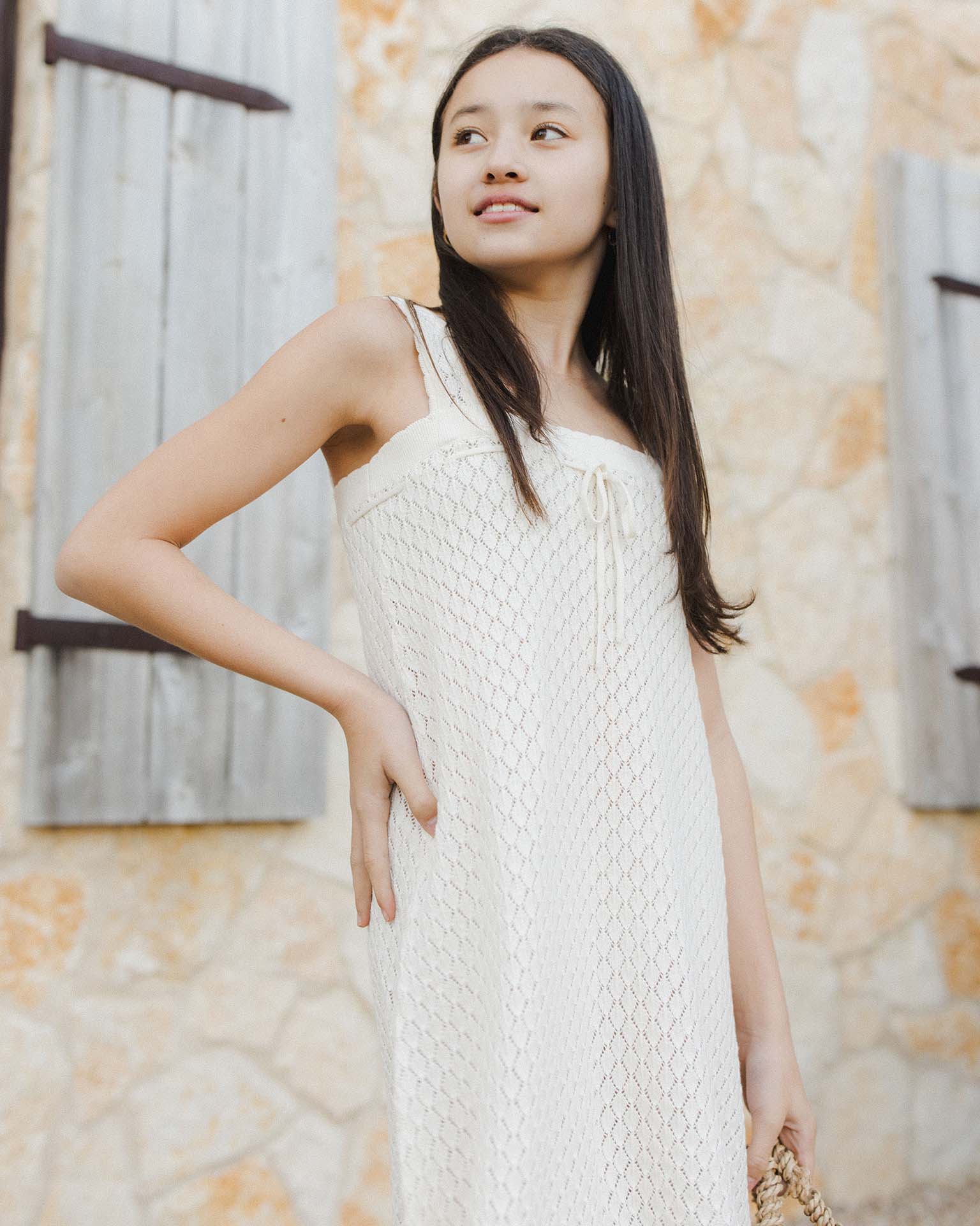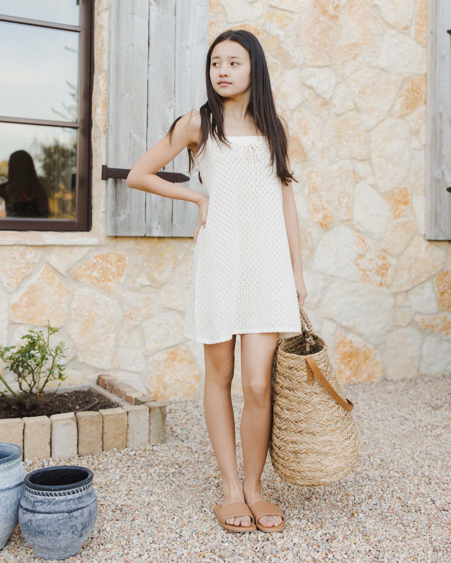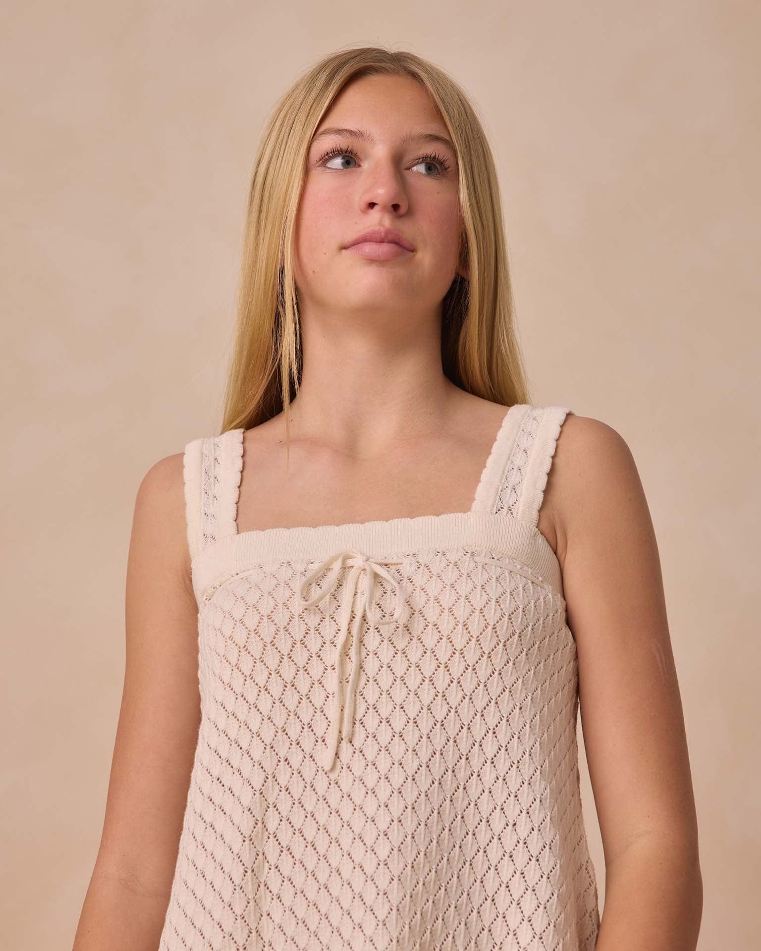 teen crochet tank mini dress in ivory
