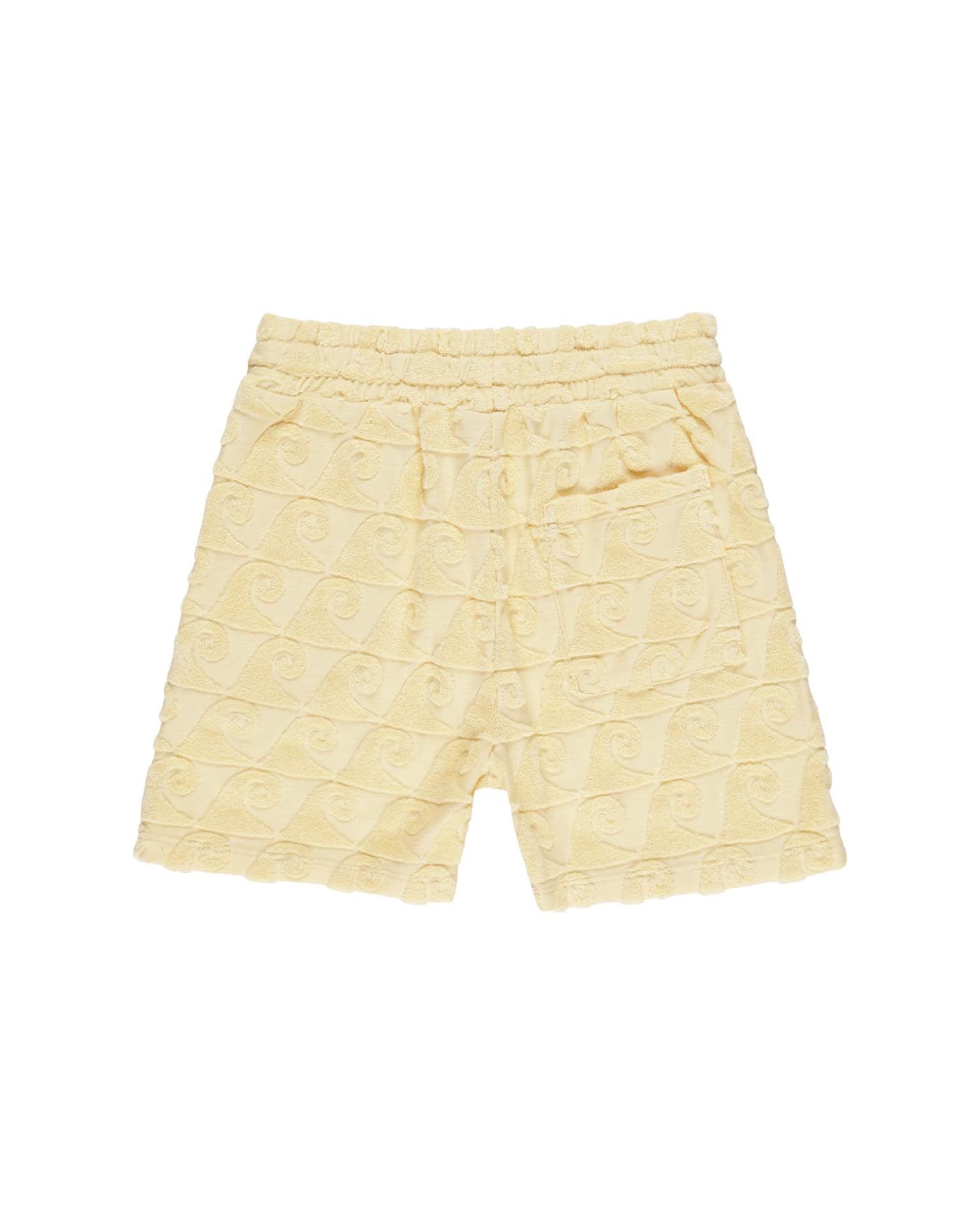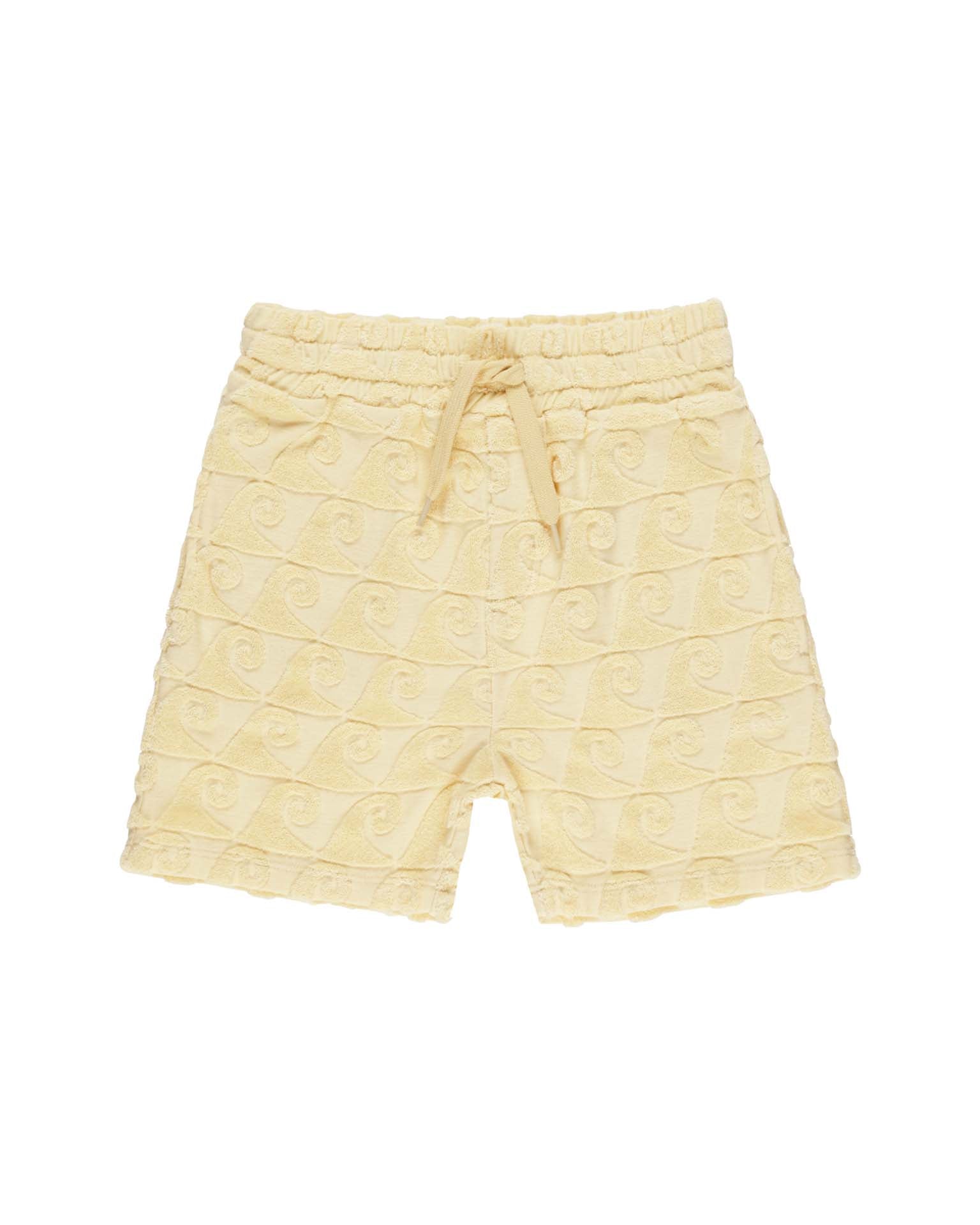 The Terry Boys Short are designed with a cord drawstring and side pockets. Enjoy sunny beach days in this retro waves look.