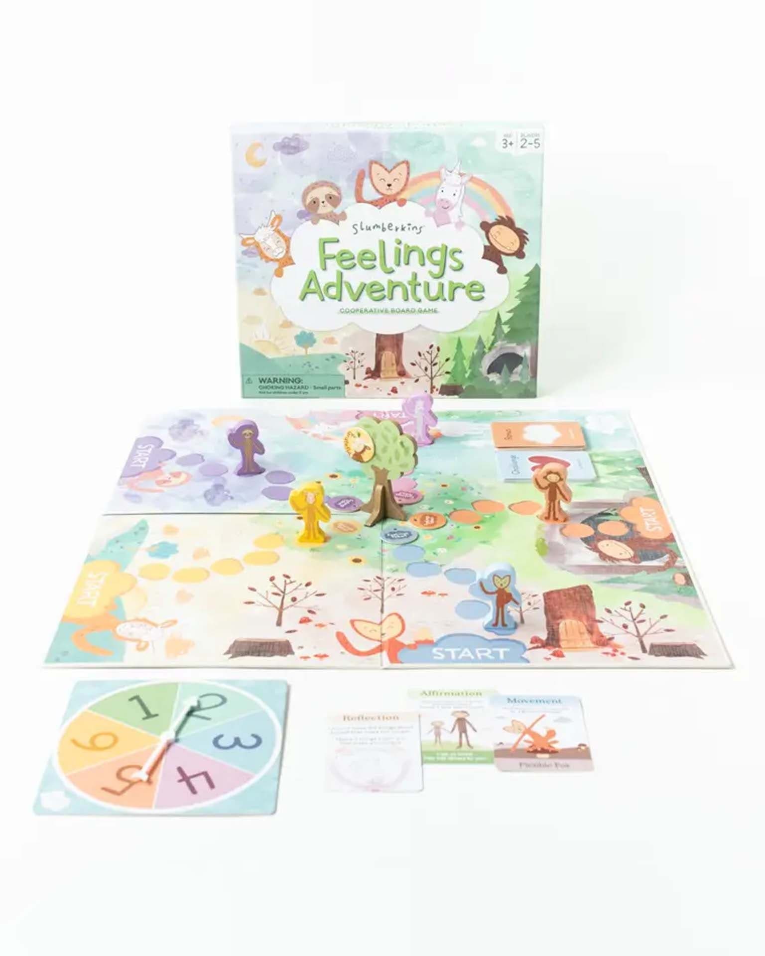 Slumberkins' first-ever board game is putting a new spin on playtime! In our all-new cooperative game, children will work together to collect tokens for the feelings tree. As they work towards a common goal, affirmations will be shared, yoga poses will be practiced, and reflection cards will keep the conversations going. With 36 challenge cards and 6 bonus cards, children can look forward to many adventures alongside their favorite slumberkins creatures.