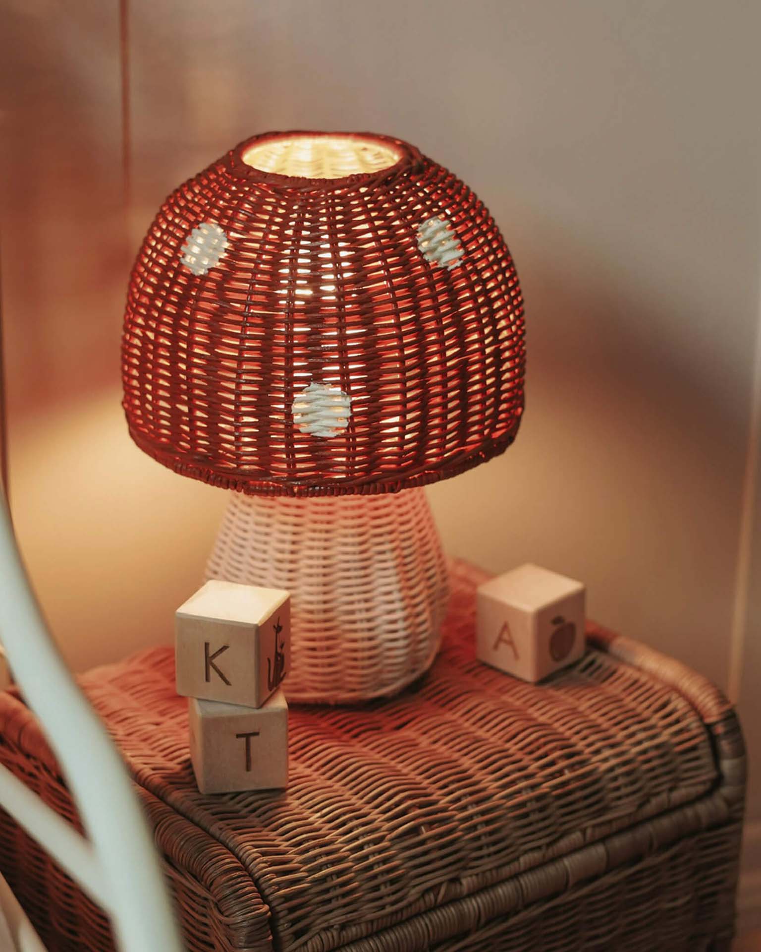Turn any room into a page from a fairy tale with the Toadstool Lamp in Red, a whimsical piece that adds both light and magic to your space. The vibrant red, mushroom-shaped top casts an enchanting glow, making it the perfect addition to a nursery, playroom, or anywhere in need of a touch of woodland wonder. Pair it with other pieces from our Mushroom range to create the most magical of spaces.