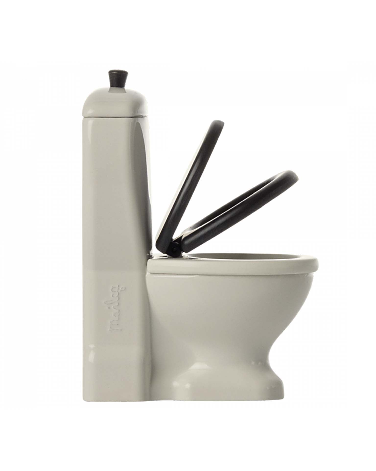 A toilet is added to the bathroom assortment. It is beautifully made in an off-white color with a black seat. Seat can open and close, and a pull function in the handle makes it very real and playful. It is perfect in size for the mouse family.
