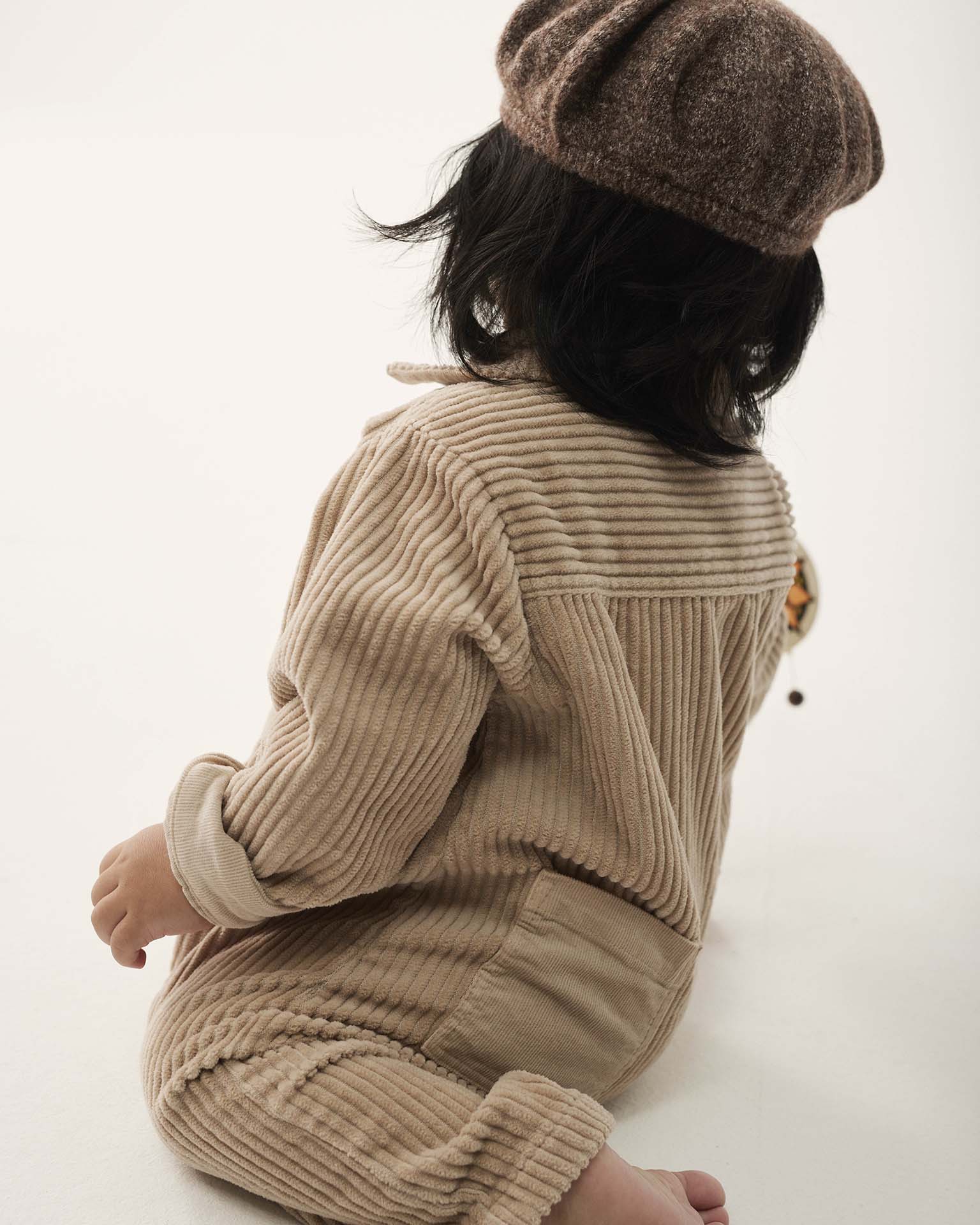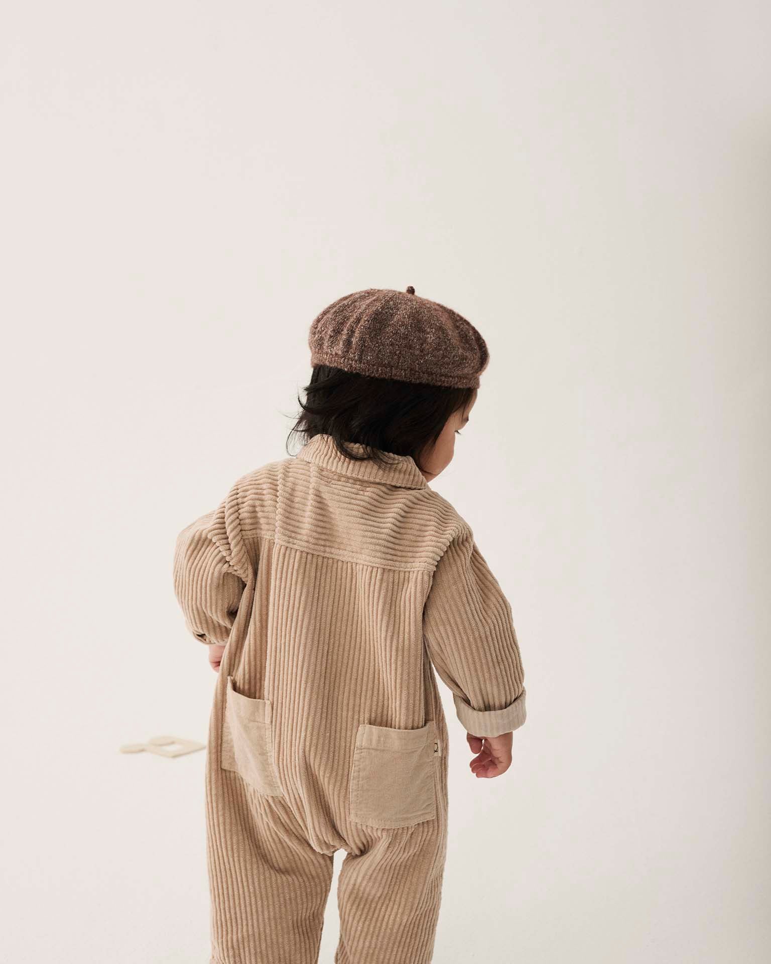 trento wide corduroy baby jumpsuit in stone