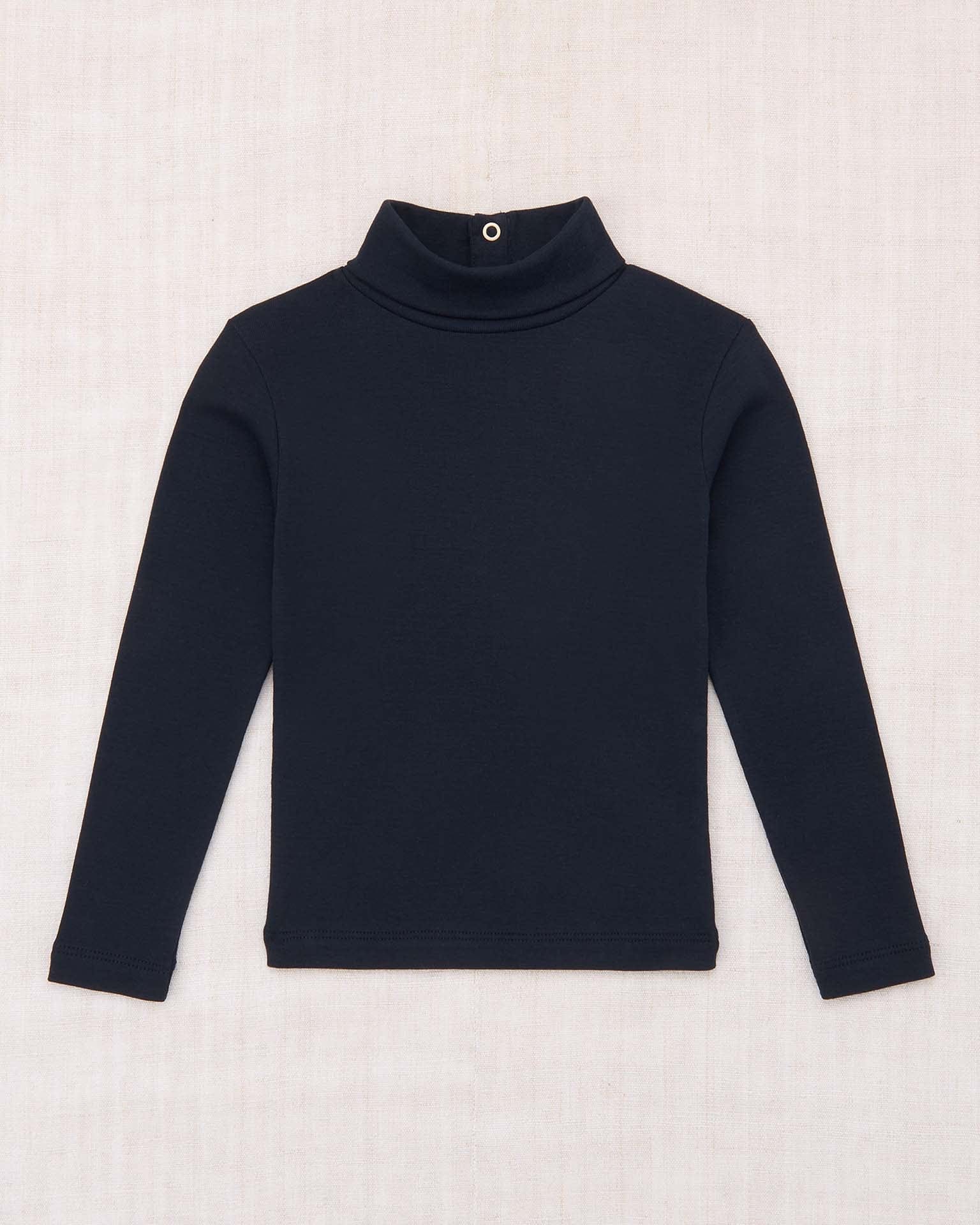 A classic long-sleeved turtleneck in organic Pima cotton, with snap closure at the back neck. Perfect for layering.