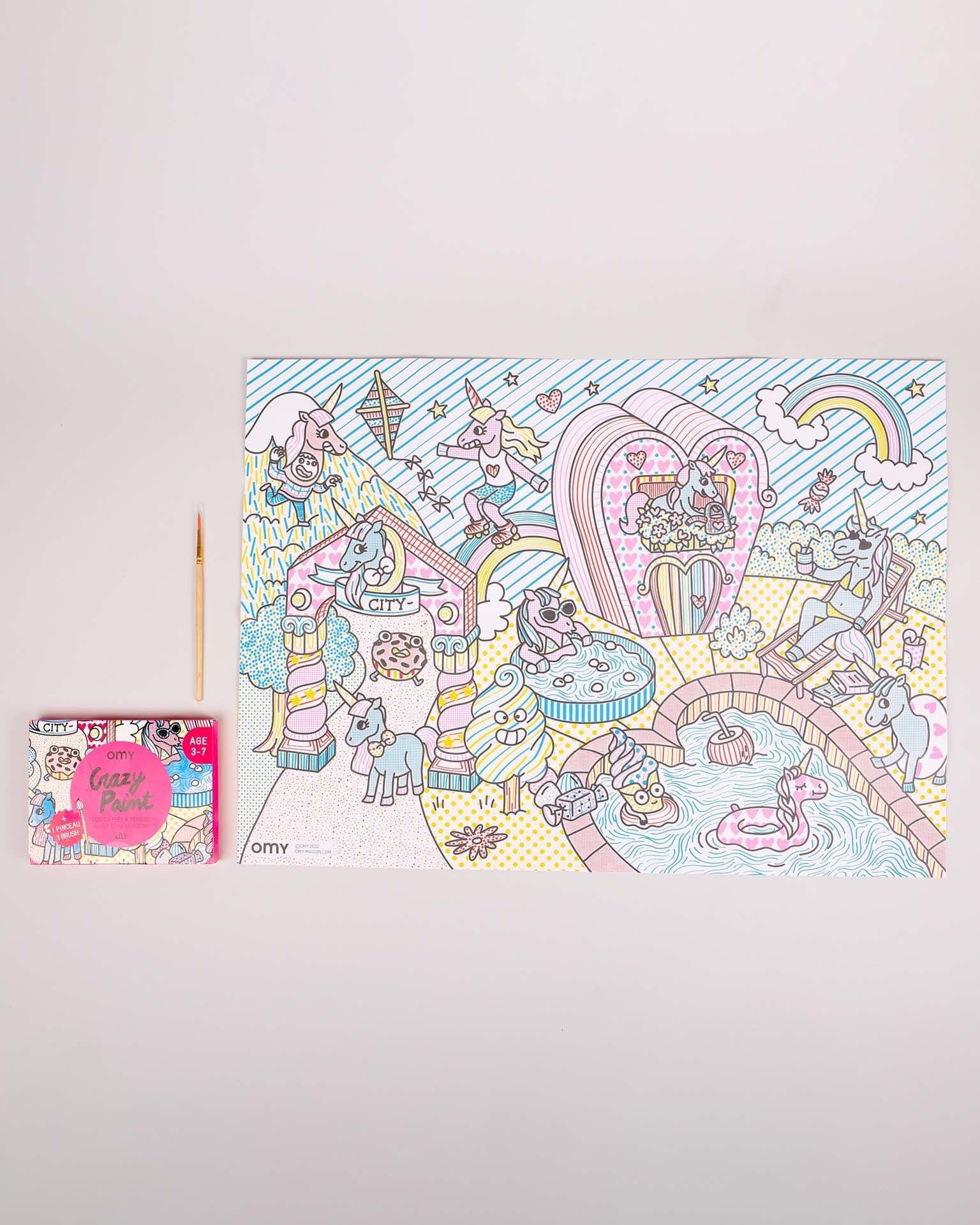 Discover the world with this ready to paint mini poster from Omy. With paint dots already printed on the paper, all you need is water and the brush to create your crazy painting. Perfect for travel or rainy days indoors.