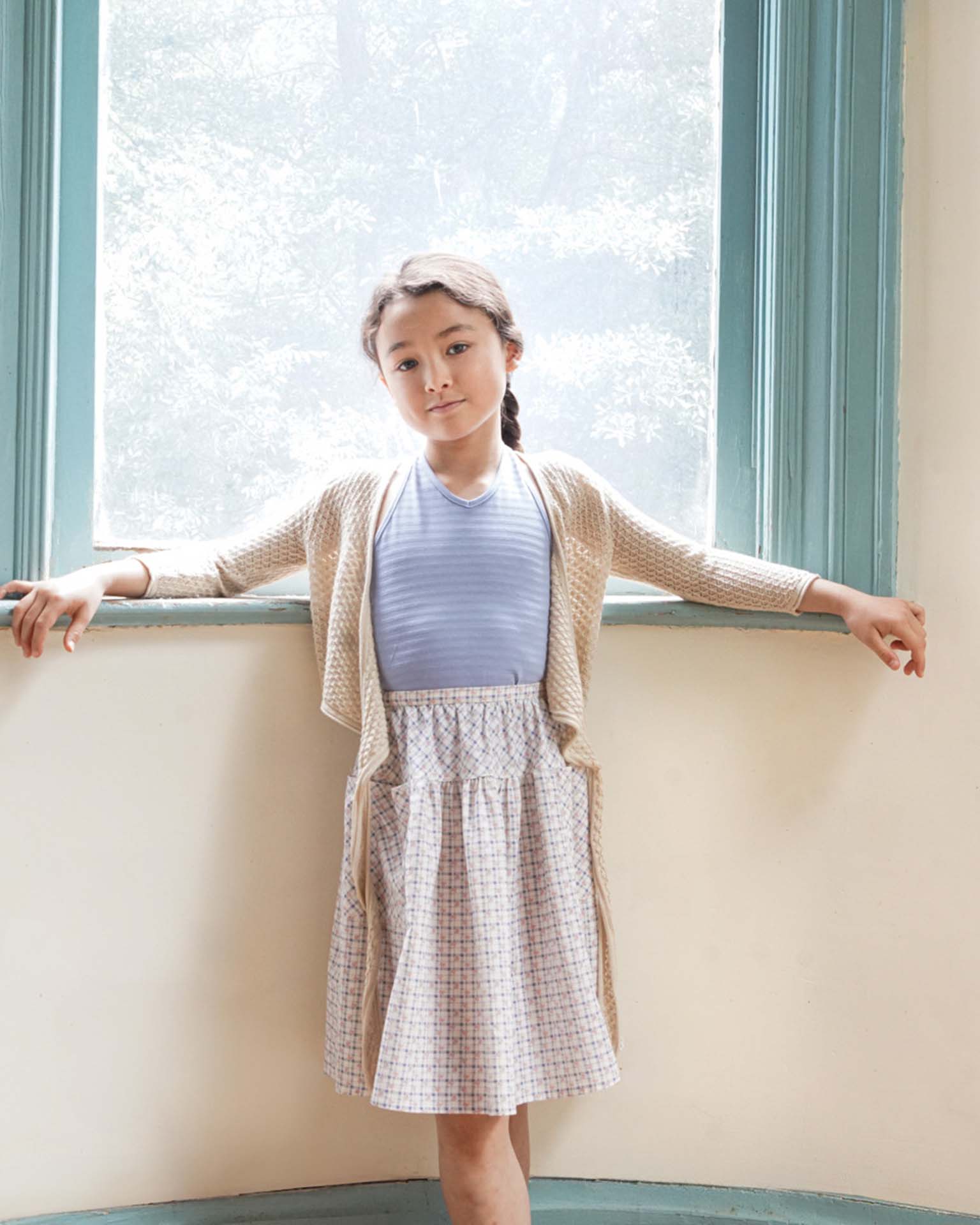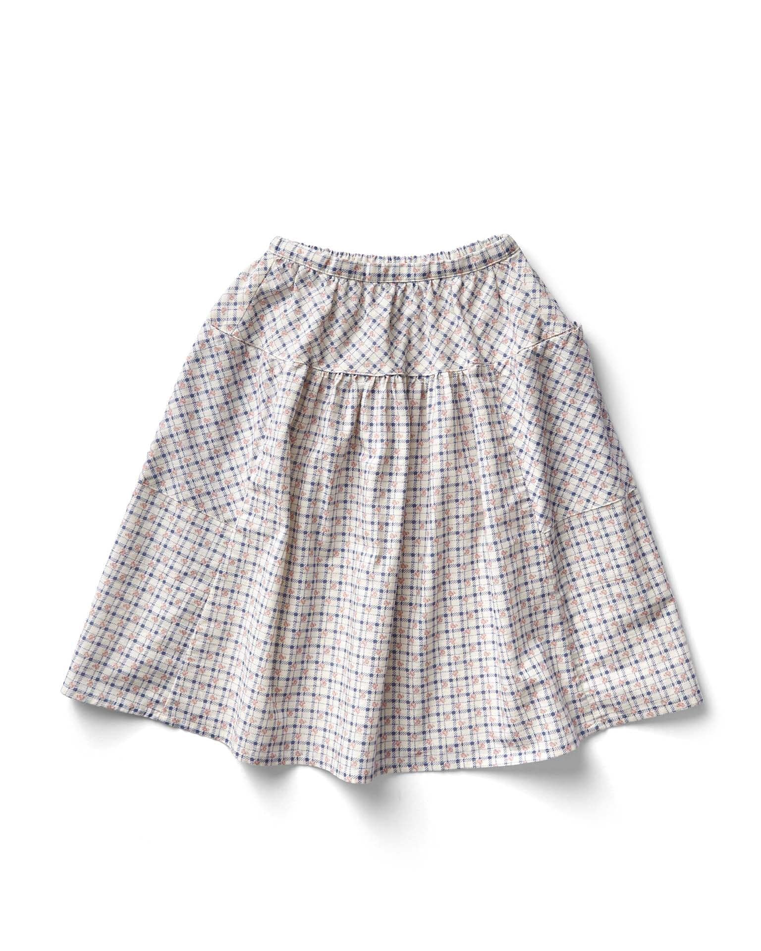 vada skirt in checker rose print, blueberry