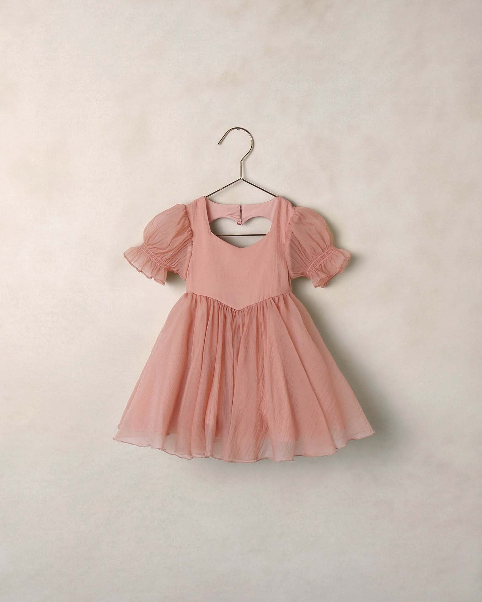 The Valentine Dress lives up to its name with an elegant heart-shaped back cutout topped with a button closure. Organza sleeves and skirt make this new silhouette a season favorite.