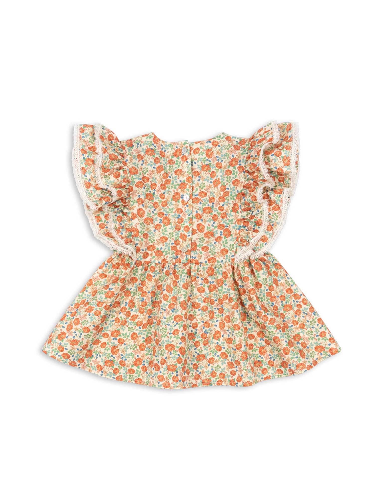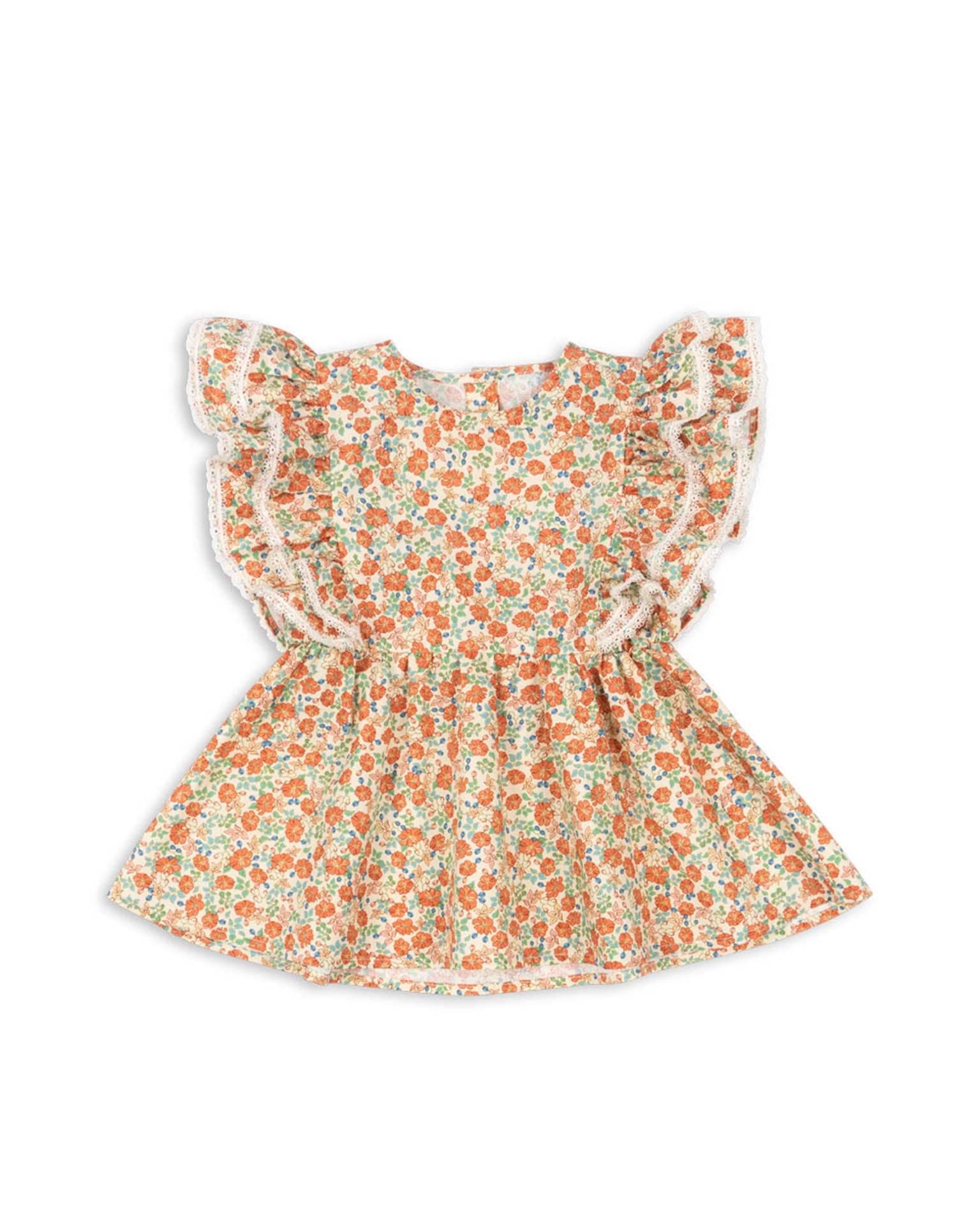 The Verbena top from Konges Sløjd is made from organic cotton and features sweet lace frill detailing. Pair it with the Verbena shorts for a matching set.
