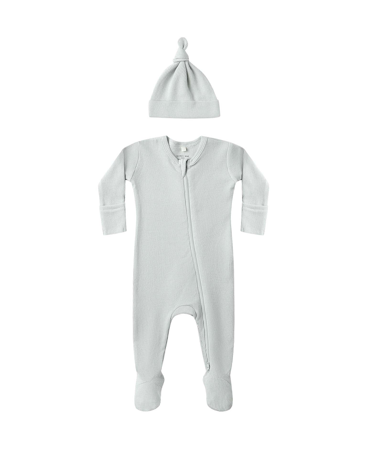 Made from our soft waffle fabric, this long sleeve sleeper keeps your little one cozy all season long. Paired with a knotted hat, it’s the perfect set for comfort and warmth. Sizes NB - 3-6M feature fold over hand mitts. Sizes 6-12M - 12-18M feature rubber dots on the soles.