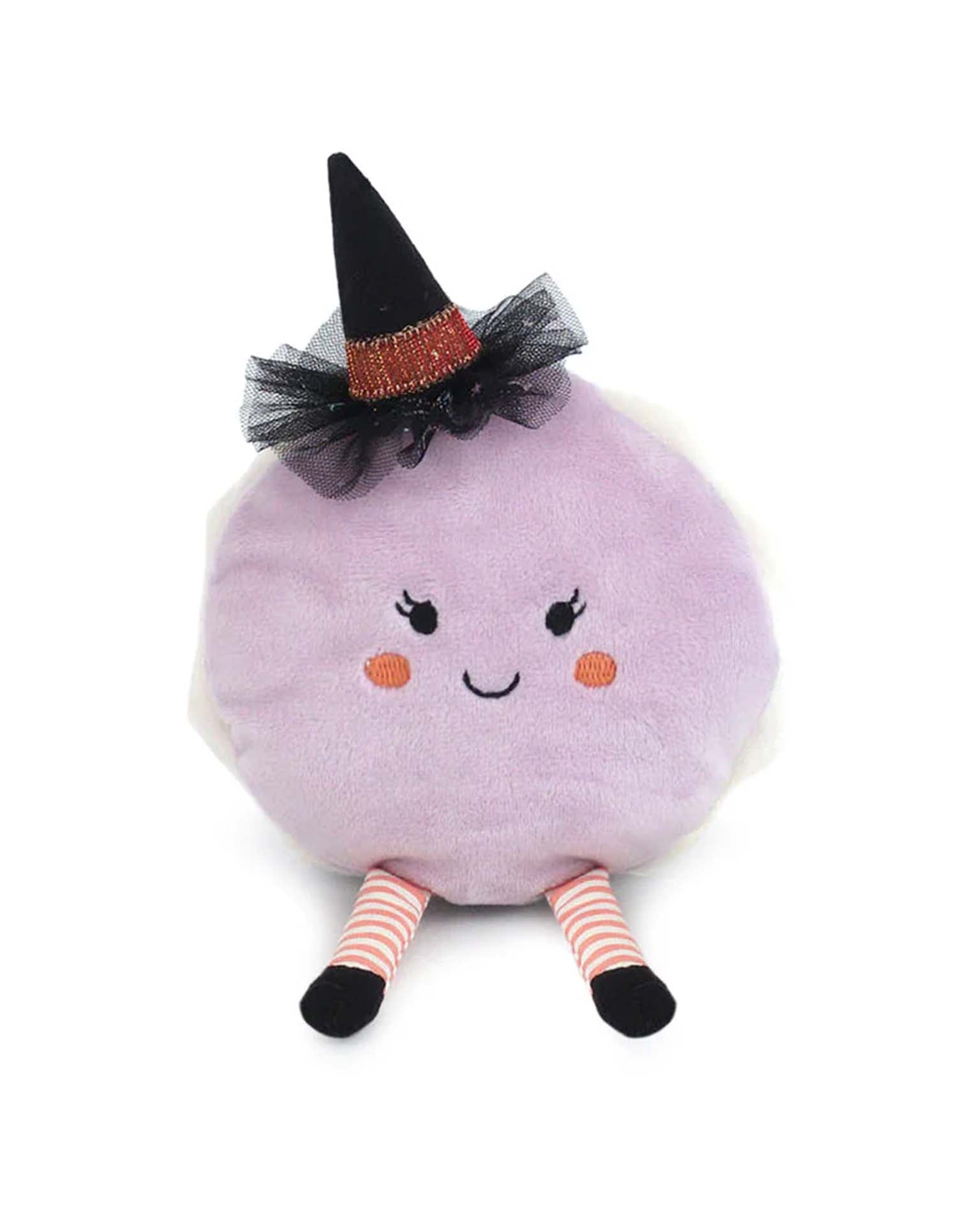 Say hello to Halloween's favorite sweet with a witchy twist! This plush macaron dressed as a witch is a delightful makeover of the classic treat, featuring charming pink and purple hues that are pure whimsy. With playful pink-striped legs, it's ready to skip into your heart and add a sprinkle of fun to any spooky celebration. Whether it's perched on your shelf or snuggled tight during movie nights, this candy-inspired cutie brings all the festive vibes without the sugar crash!