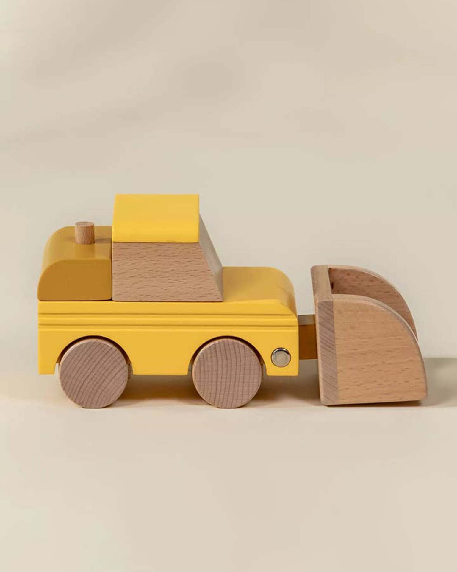 Built from sturdy wood, this construction truck adds fun to any building zone. Sparks creativity and endless play! Match this vehicle with the collection of 6 Construction vehicles. For even more fun, add the Oversized Wooden Construction Crane.