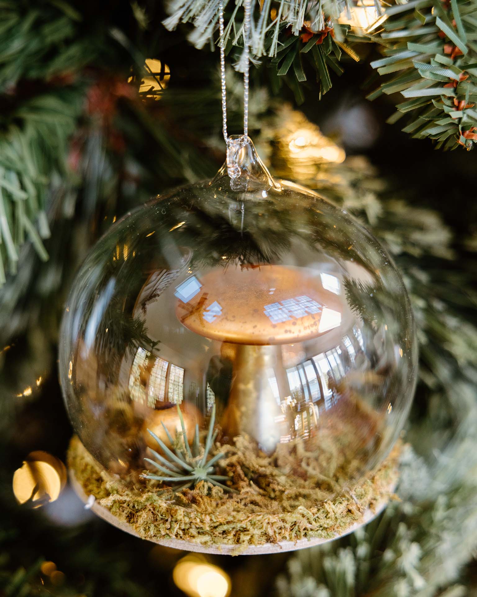 woodland mushroom globe ornament in gold