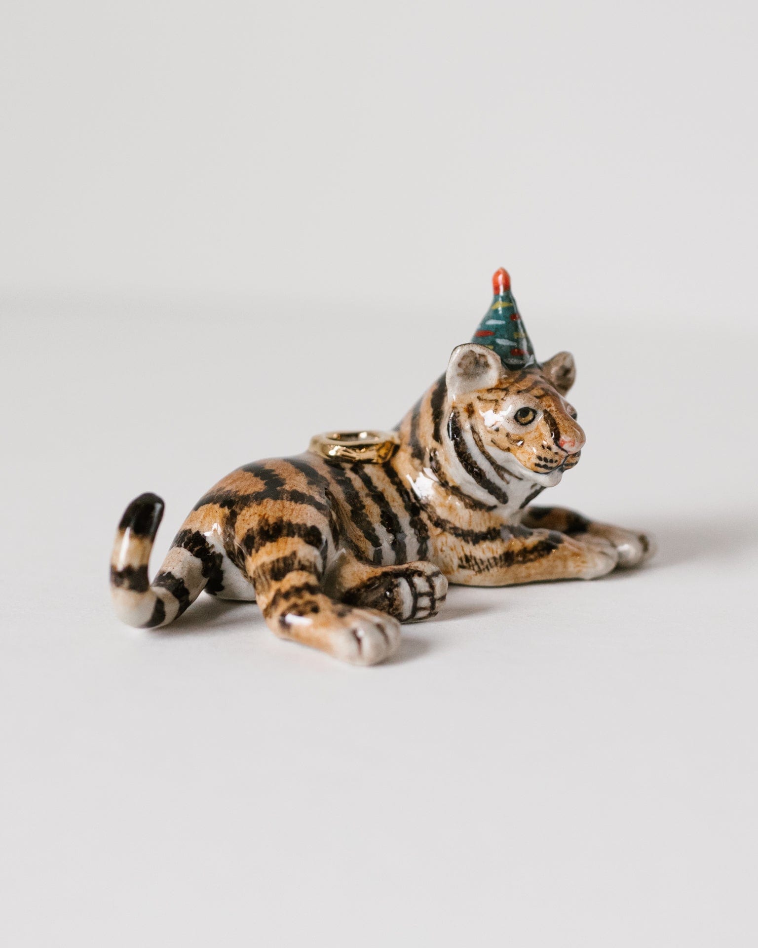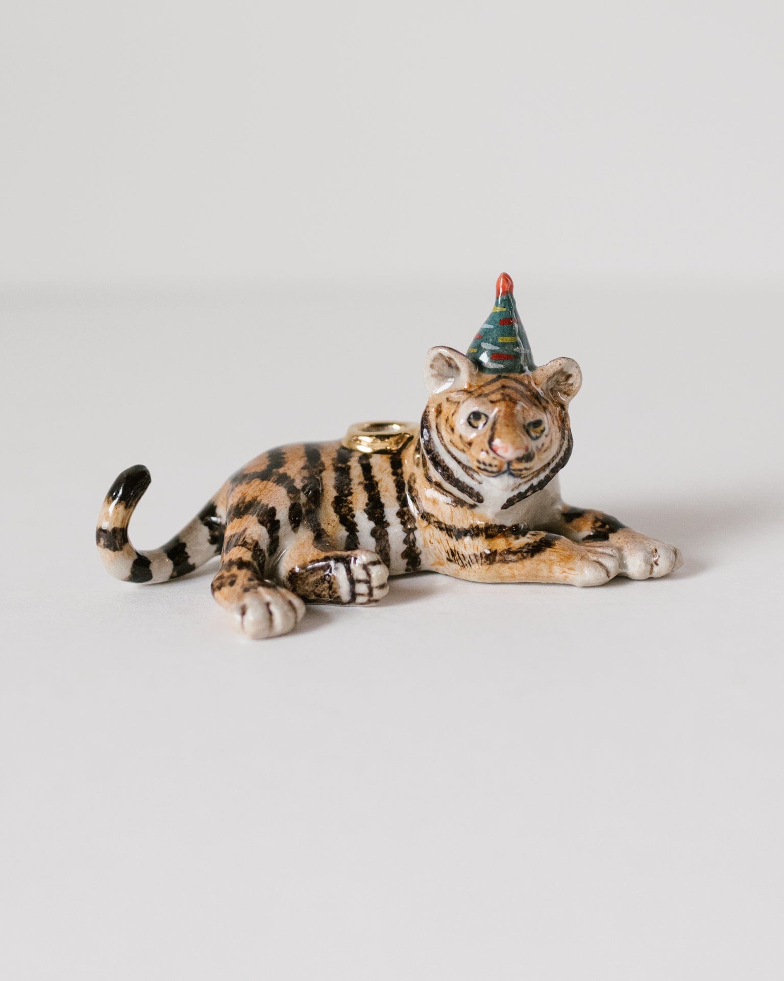 Celebrate with a little whimsy with this ceramic Year of the Tiger Cake Topper from Camp Hollow. This hand-painted candle holder is the perfect accessory for that sweet special occasion. With heirloom-quality craftsmanship, this tiger is sure to be a treasured family keepsake. Party on!