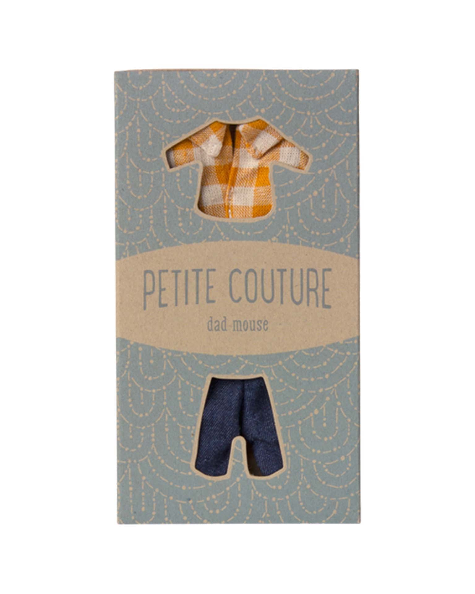 If you need a new set of clothes for your mouse this set will be a good choice. This set consists of a yellow checked shirt and pants.